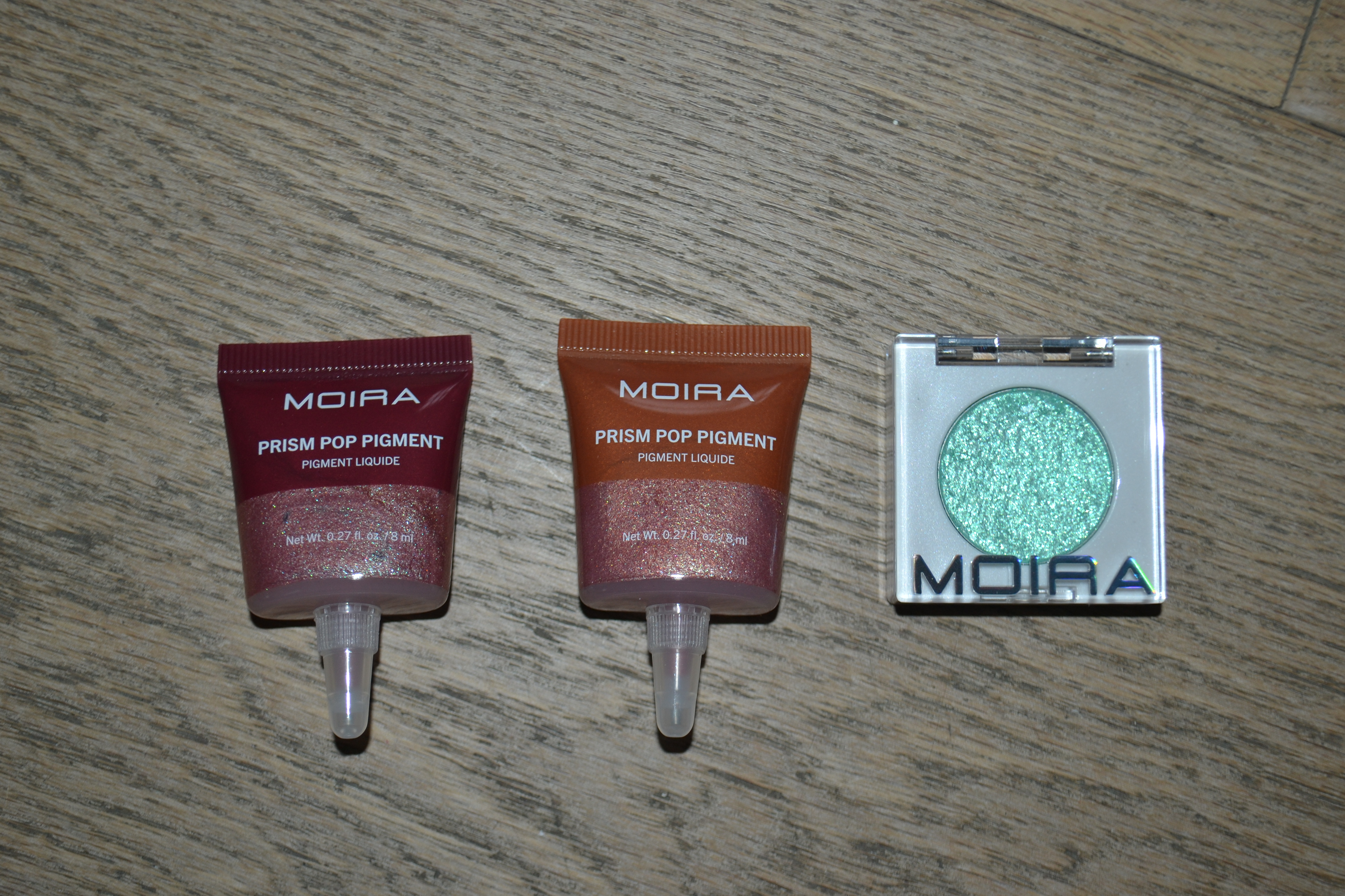 For eyes, I also picked up two of the Moira Prism Pop pigments in 001 Sugar Plum and 002 Happy Holo and one of the Moira Chrome Light Shadows in 010 Aquamarine. I haven’t tried any of these yet, so I don’t know if they’re any good.