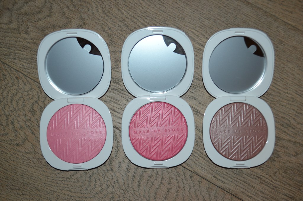 I’ve been intrigued by the Make Up Store Iconic Luster blushes and Iconic Radiance highlighter ever since I first saw them, so I decided to get three shades of the blushes (20 Frosted Pink, 30 True Pink, and 40 Vintage Rose) and the highlighter in the shade 10 Pearl Glow. I’m really liking these so far.