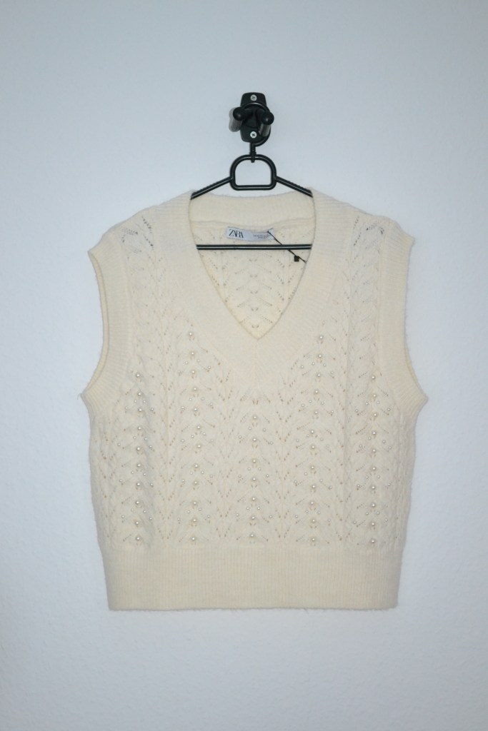 The next two vests are sweater vests, and they’re both from Zara and both are so cute. I wore the cream coloured one with pearls yesterday, and I think I’ll wear the blue one with the clouds tomorrow.