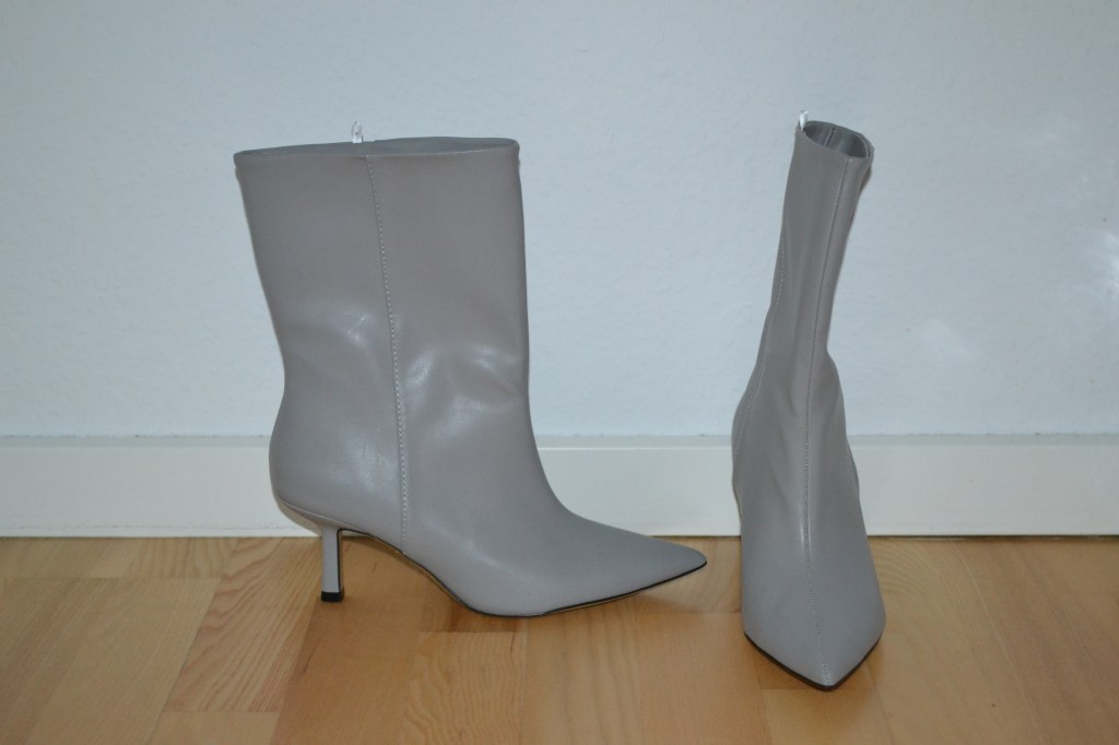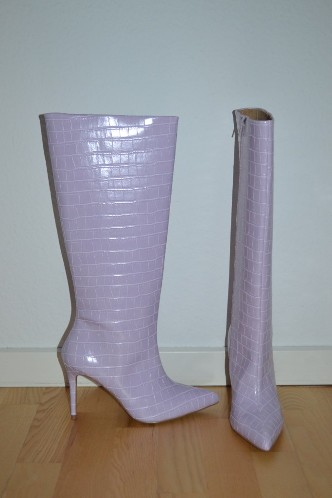I have two pairs of boots to share with you. I’ve been wanting a pair of grey boots for a while, and these calf lengh kitten heel boots from H&M were just it. And look at those lilac knee high croc boots! They’re from Asos, and they are beautiful.