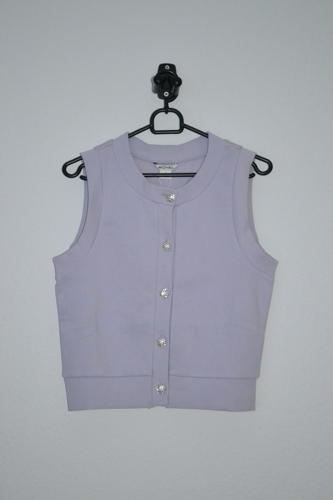 And I have more vests to share with you. This is another Monki vest, however not a sweater vest. I obviously love the colour, and I also really like the rhinestone buttons.