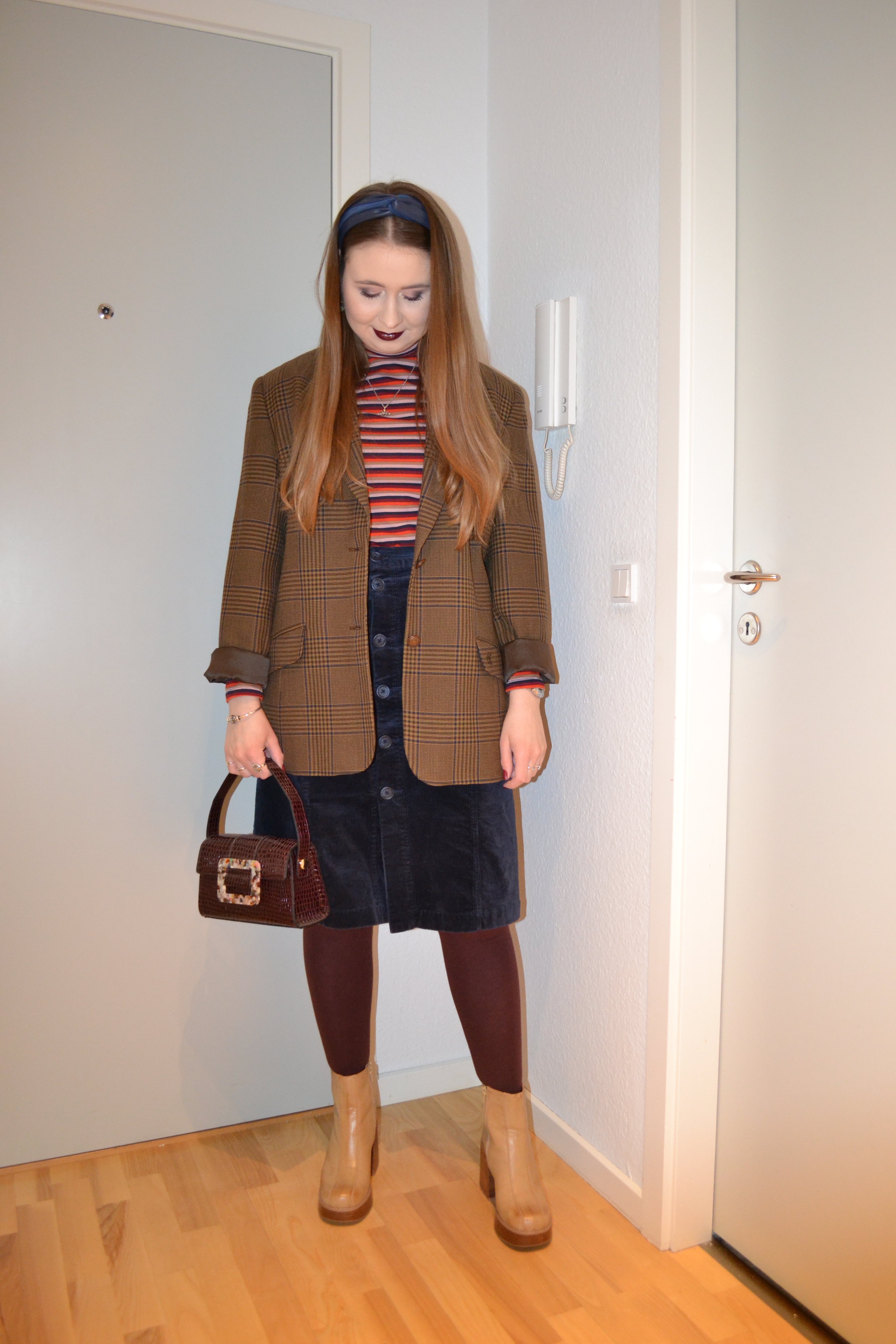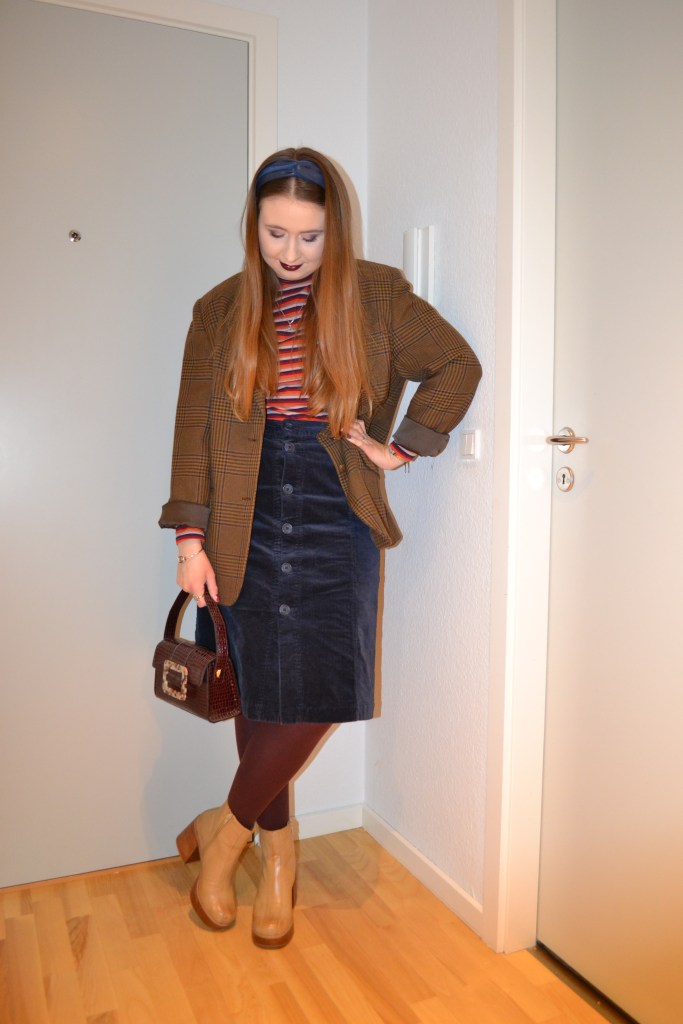 (Blazer – second hand, roll neck top + skirt – Monki, tights – H&M, bag + boots – Asos)