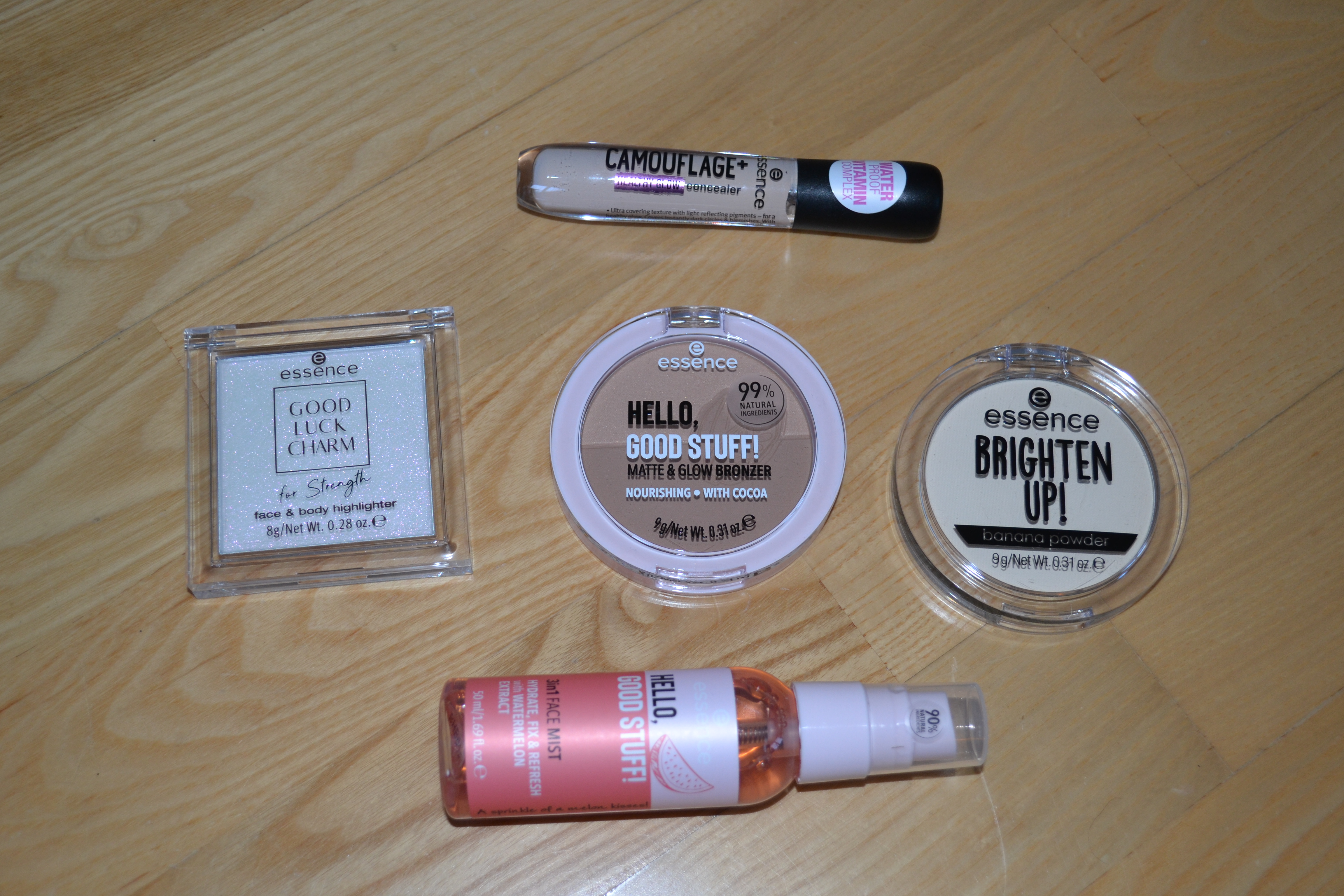 Next up we have a little random mix of things. I tried the Camouflage+ matte concealer a few years ago, and I wasn’t a fan of that one, but I thought I would give the Camouflage+ Healthy Glow concealer (shade: 10 Light Ivory) a go, and a first impressions post on it will be up soon. Another limited edition product I’ve purchased is the Good Luck Charm face & body highlighter in 01 Glitter Shower For Superpower. It has a very unique texture; it’s somewhere between a cream and a balm I would say. It barely has any colour to it; it’s mainly pink glitter, so keep that in mind if you’re not a fan of glittery highlighters. The bronzer and the 3in1 Face Mist is from the Hello, Good Stuff! line. The bronzer is called the Hello, Good Stuff! matte & glow bronzer, and I got the shade 10 Cocoa-Cool. It also comes in a darker shade. I’ve really been enjoying this bronzer; I really like the split pan design with a matte shade on one side and a glowy shade on the other side. The Hello, Good Stuff! 3in1 Face Mist claims to hydrate, fix, and refresh the skin and it contains watermelon extract. It smells like (artificial) watermelon, and it smells really good. One of my most used products from this haul, and also one of my favourites, is the Brighten Up! Banana powder in 10 Bababanana. I love this powder so much that I featured it in my March 5 favourites.