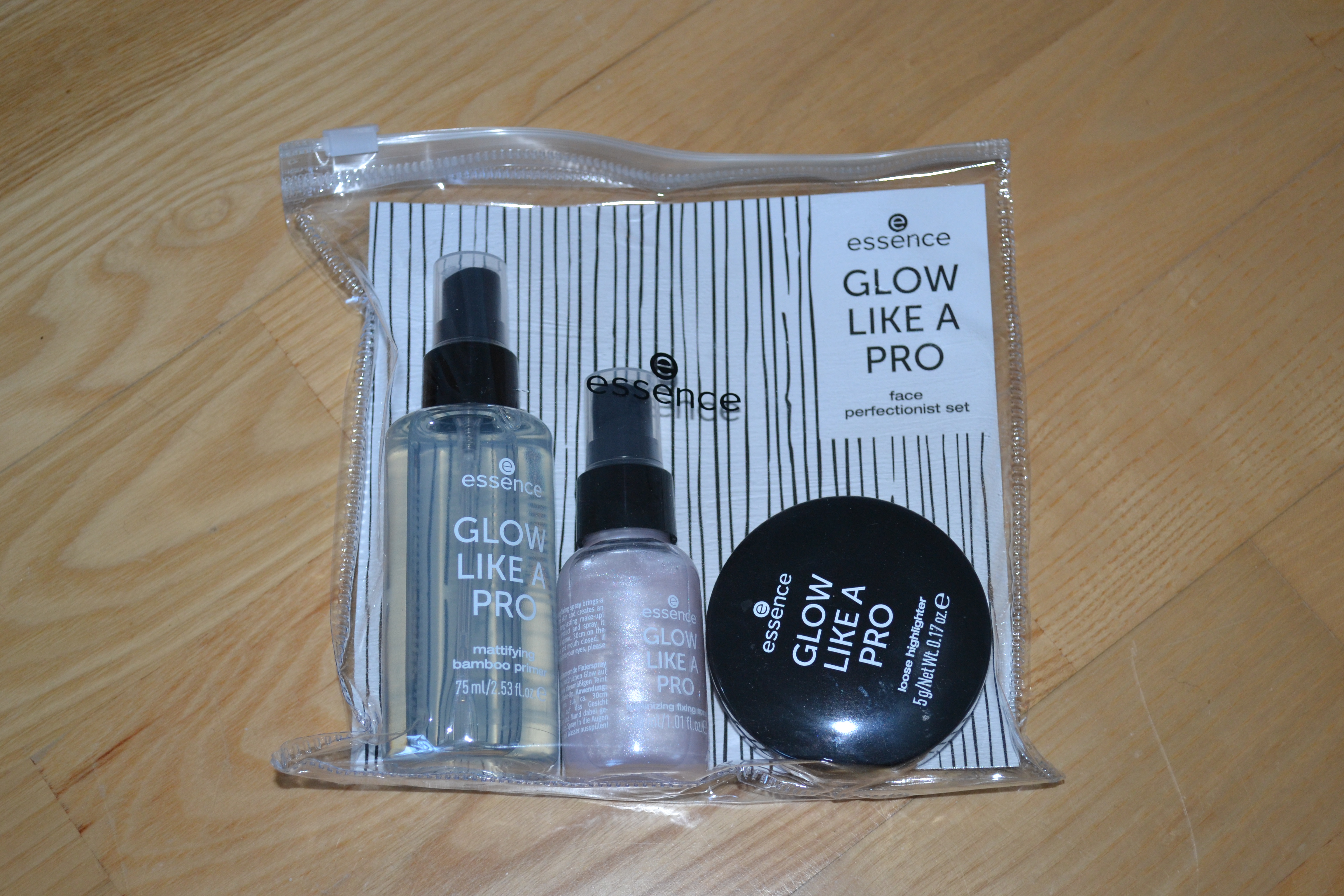 I also purchased the Glow Like A Pro face perfectionist set in 04 Purple Scandal, which contains the Glow Like A Pro mattifying bamboo primer, the Glow Like A Pro luminizing fixing spray, and the Glow Like A Pro loose highlighter. So far I really like these products. Especially the loose highlighter, which looks very purple in the container, but it has a more subtle hint of purple on the skin, and it’s so pretty.