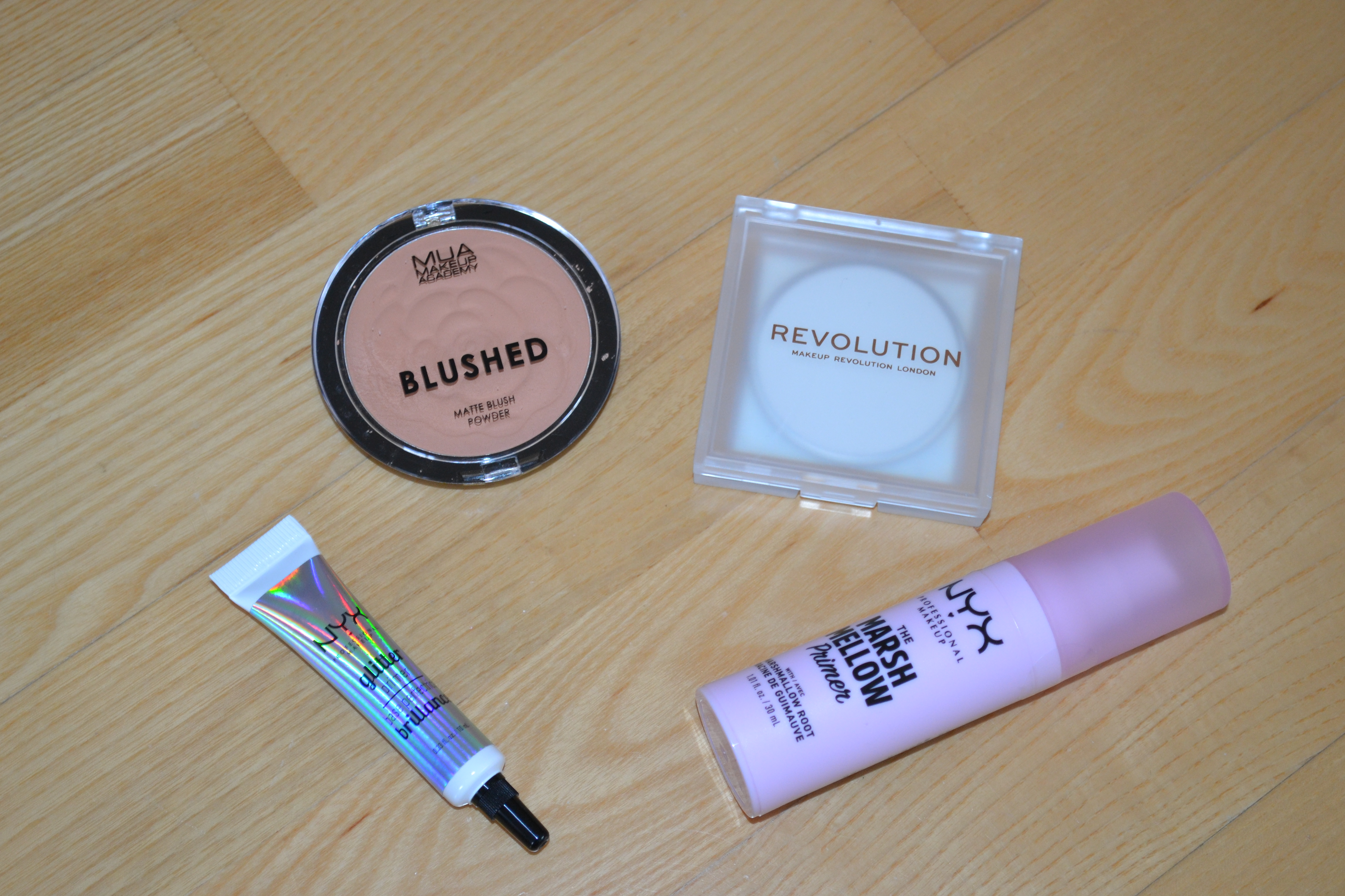 Then I also purchased some face products and some primers. I purchased the very popular NYX The Marshmellow Primer, and I have to say that I really like this primer. I see why it’s so popular. I also purchased the NYX Glitter Primer for eyeshadow, because I’ve been wanting a primer/base for very glittery shadows to stick to, and so far I really like this product as well.