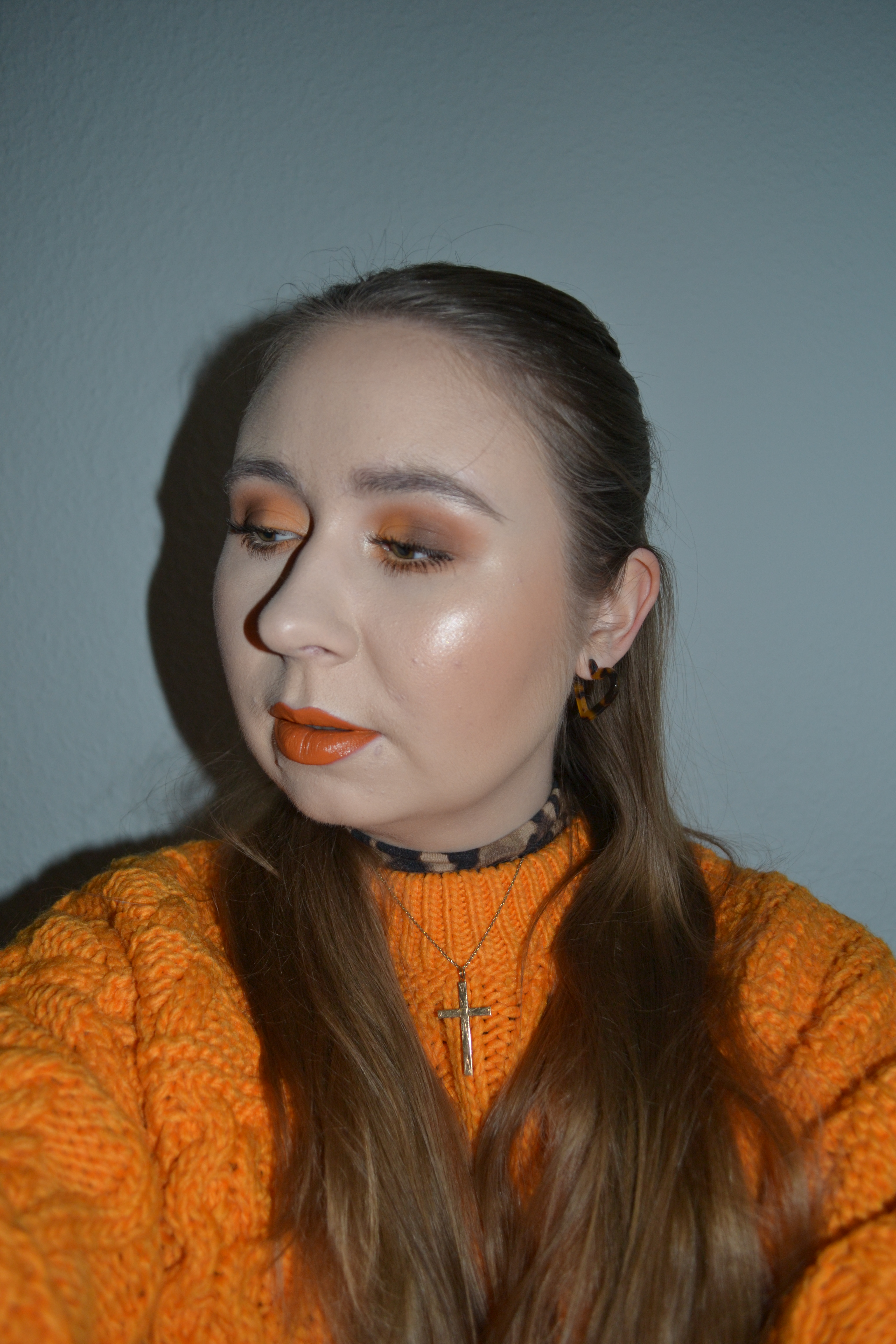 (Base: primers – Wet n Wild Photofocus face primer matte + MAC Prep + Prime Natural Radiance Illuminating Base (shade: Radiant Yellow), foundation – Maybelline Dream Urban Cover foundation (shade: 100 Warm Ivory), concealers – L’Oréal Infaillible More Than Concealer (shade: 322 Ivory) + Maybelline Instant Anti Age Eraser concealer (shade: 00 Ivory), powders – Essence Brighten Up! Banana powder in 10 Bababanana + Rimmel Clear Complexion Clarifying powder in 021 Transparent. Face make-up: bronzer – MAC Radiant Matte bronzing powder (shade: Beige-ing Beauty), blusher – Fenty Beauty Cheeks Out Freestyle Cream Blush in 01 Fuego Flush, highlighters – Essence Mini Highlighter stick + Essence The Highlighter in 01 Mesmerizing. Eye make-up: base – MAC Pro Longwear Paint Pot in Painterly, eyeshadows – NikkieTutorials x Beautybay pressed pigment palette (shades: Basic Trut + Mila + 5AM + Redemption) + MAC Nylon eyeshadow, mascaras – Essence Volume Booster lash primer + Fenty Beauty Full Frontal – Volume, Lift & Curl mascara, eyeliner – MAC Studio Chromagraphic pencil in NC15/NW20. Eyebrows: Maybelline Brow Ultra Slim pencil in Medium Brown + e.l.f. Clear Brow & Lash Mascara. Lips: Jeffree Star Velour lip liner in Allegedly + Lime Crime Unicorn lipstick in October)