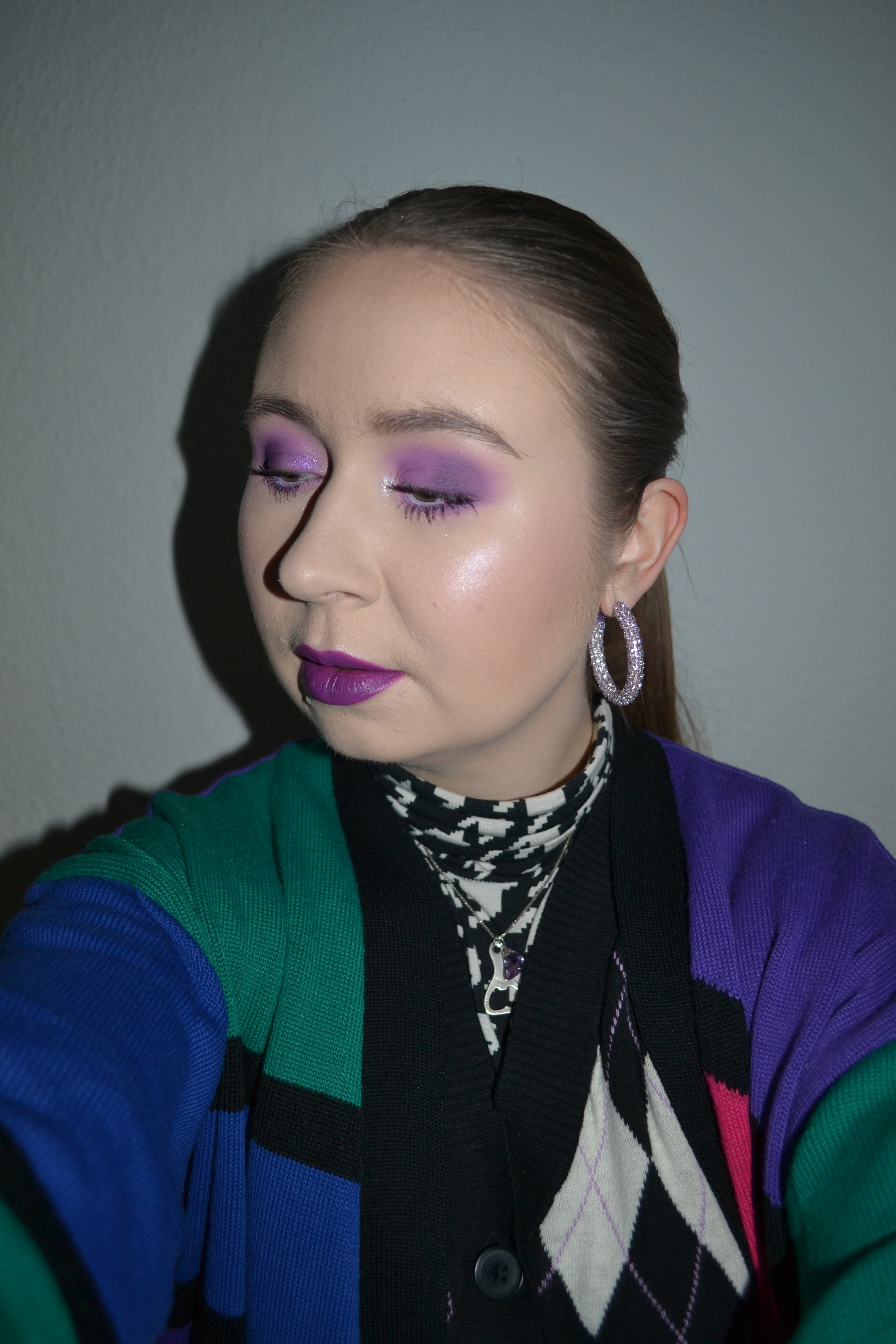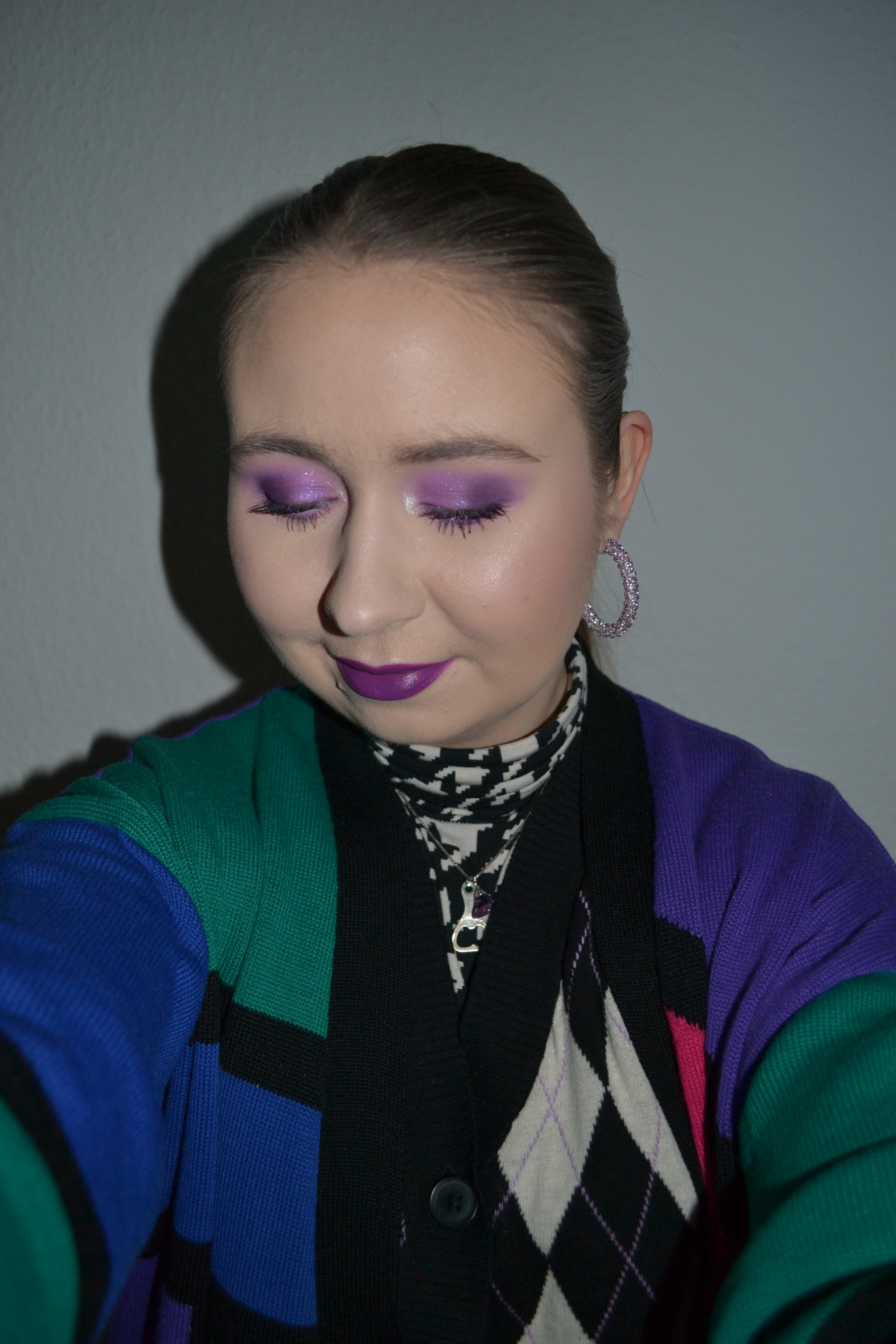 Here’s the make-up I wore with this outfit. I just couldn’t get my camera to focus on my eyeshadow properly, which is a shame, because this is such a pretty purple look.