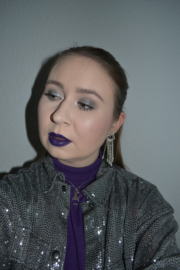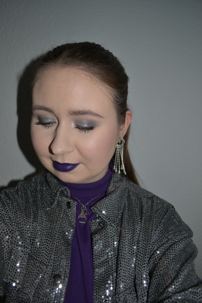 Here’s the make-up I wore with this outfit. I hadn’t worn this dark of a purple lip in a while, but I think it looks great paired with the grey eye make-up.