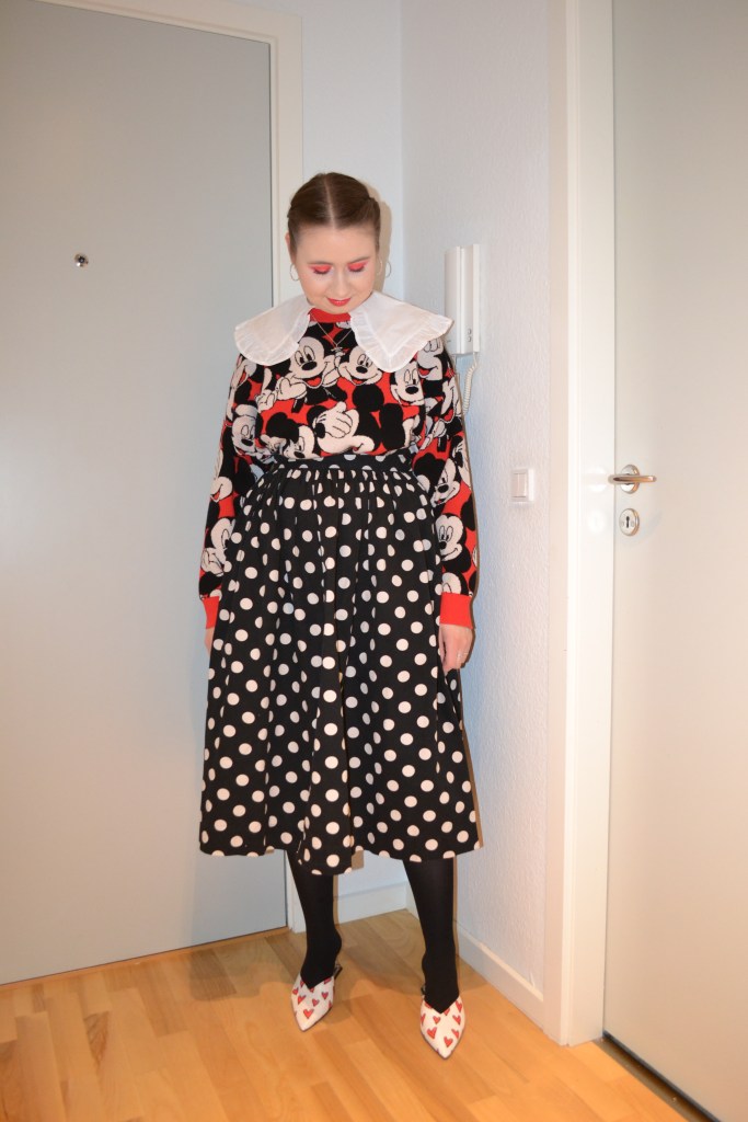 (Jumper – Bershka, skirt – H&M, collar + heels – Asos)
