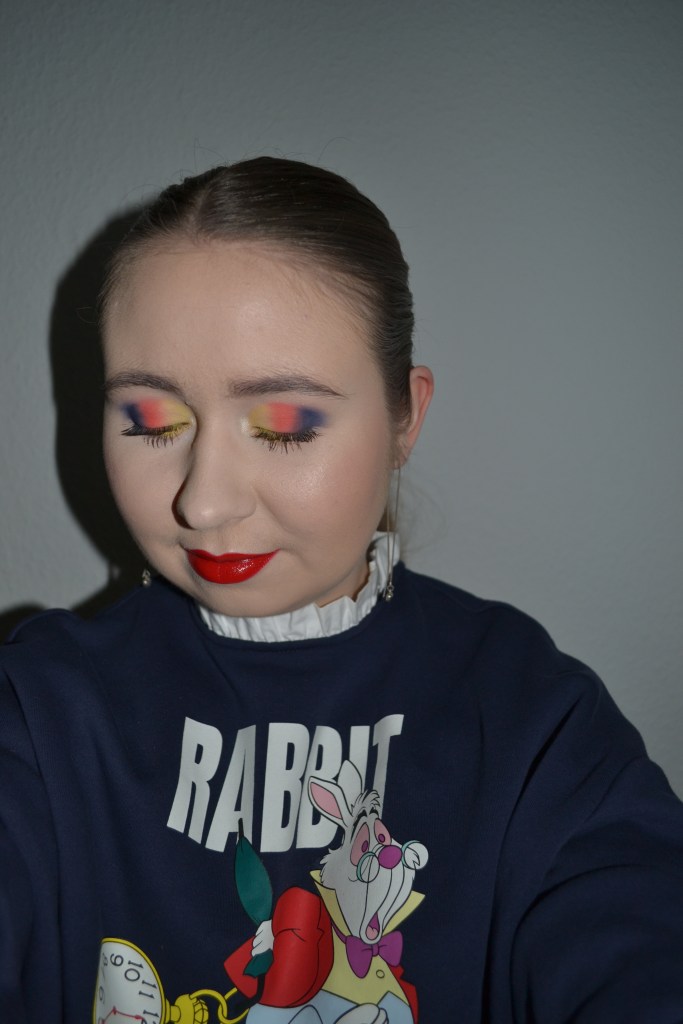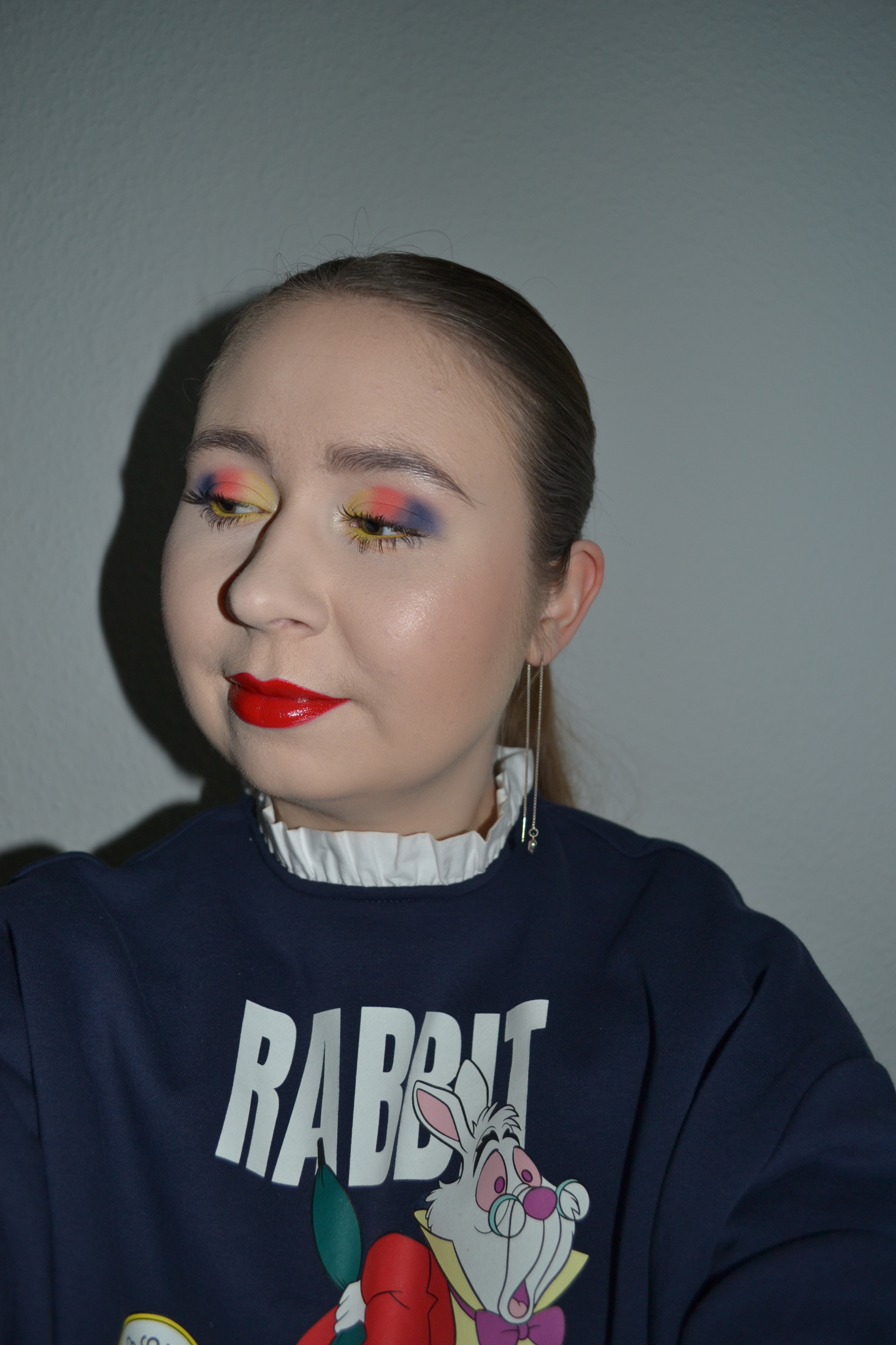 Here’s the make-up I wore with this outfit. I wanted to play with make-up and create a different kind of eye look, and this matte look turned out quite fun. I used the same technique when I created this rainbow eye look.