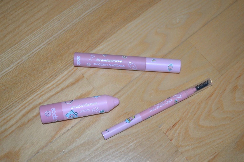 Most of the Soda products come with stickers, so this is what my products look like now (apart from the brow liner – the stickers didn’t want to stick to it).