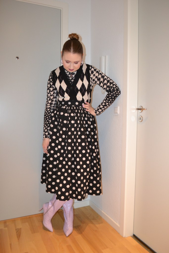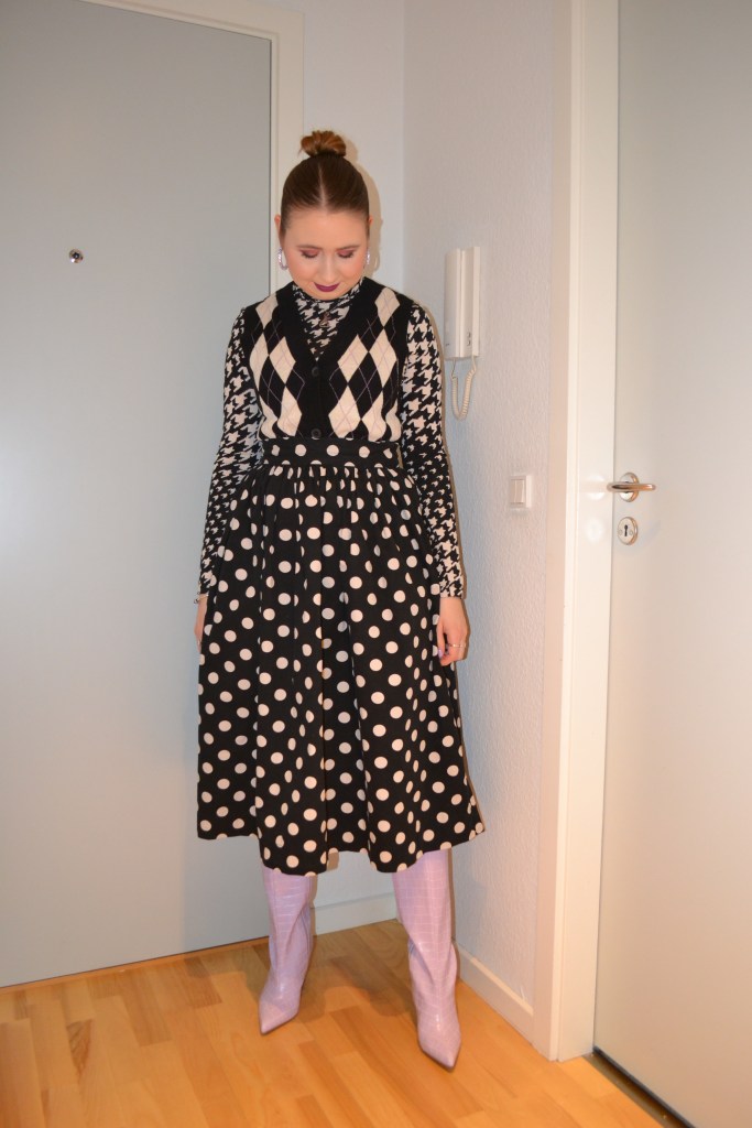 (Sweater vest – Monki, roll neck top + skirt – H&M, boots – Asos)