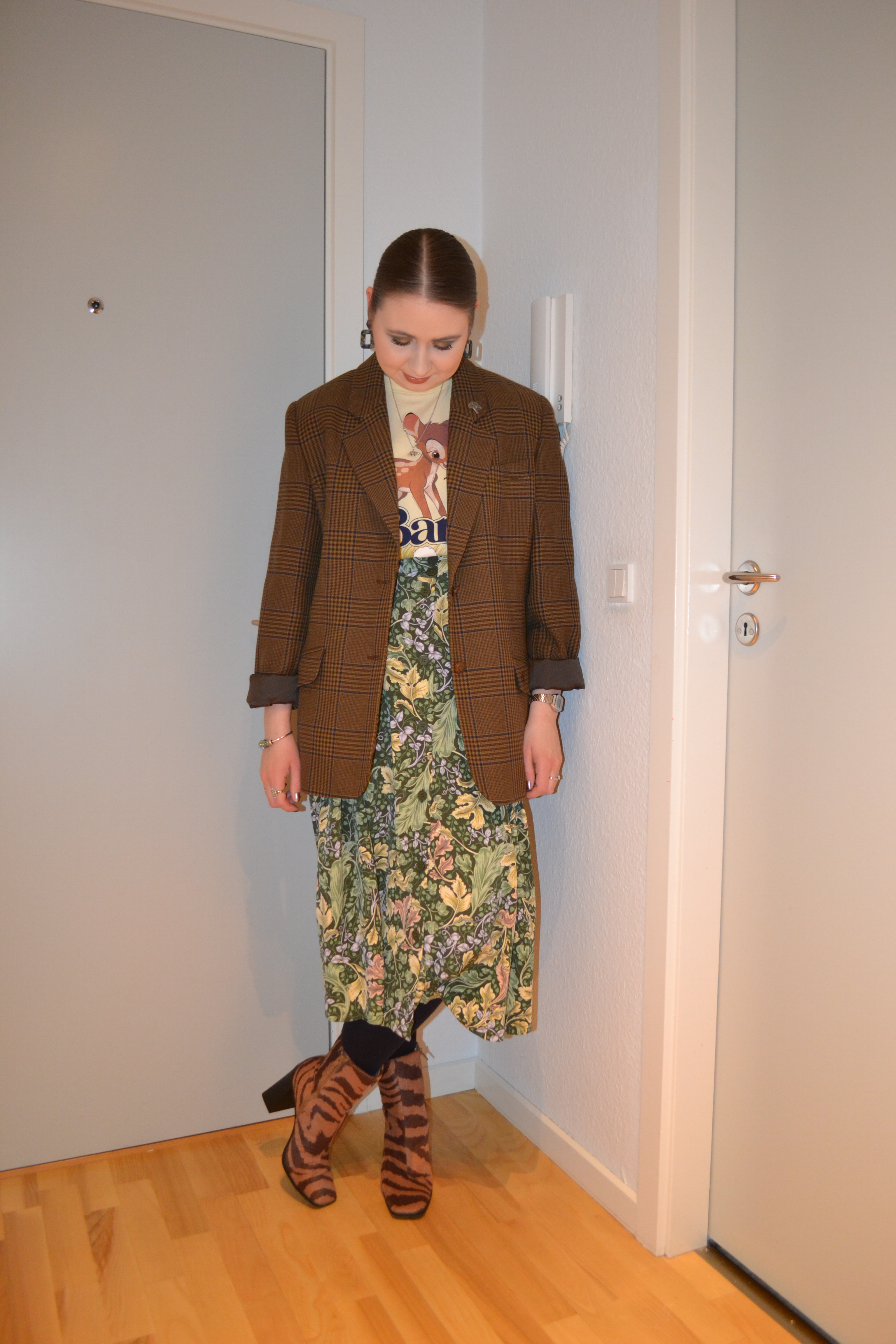 Neutral print mix happened Posted on July 21, 2021 by Mucha-Lucha Here’s what I wore Thursday April 8. As far as I remember, I just wanted to wear the green floral skirt again, and suddenly this neutral print mix of an outfit happened. (Blazer – second hand, T-shirt – H&M, skirt + boots – Monki) Share this: Click to share on X (Opens in new window) X Click to share on Facebook (Opens in new window) Facebook Like Loading... Related