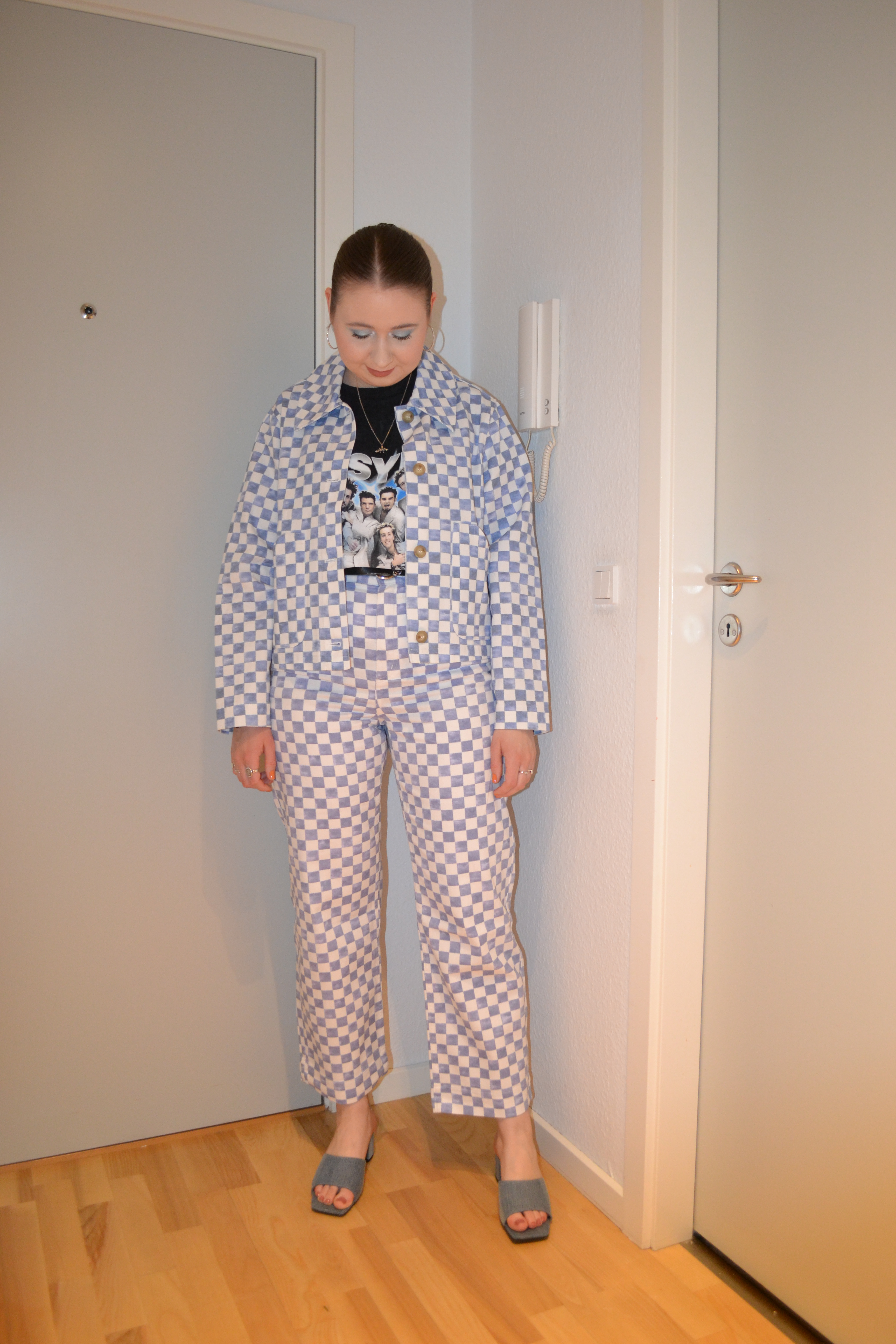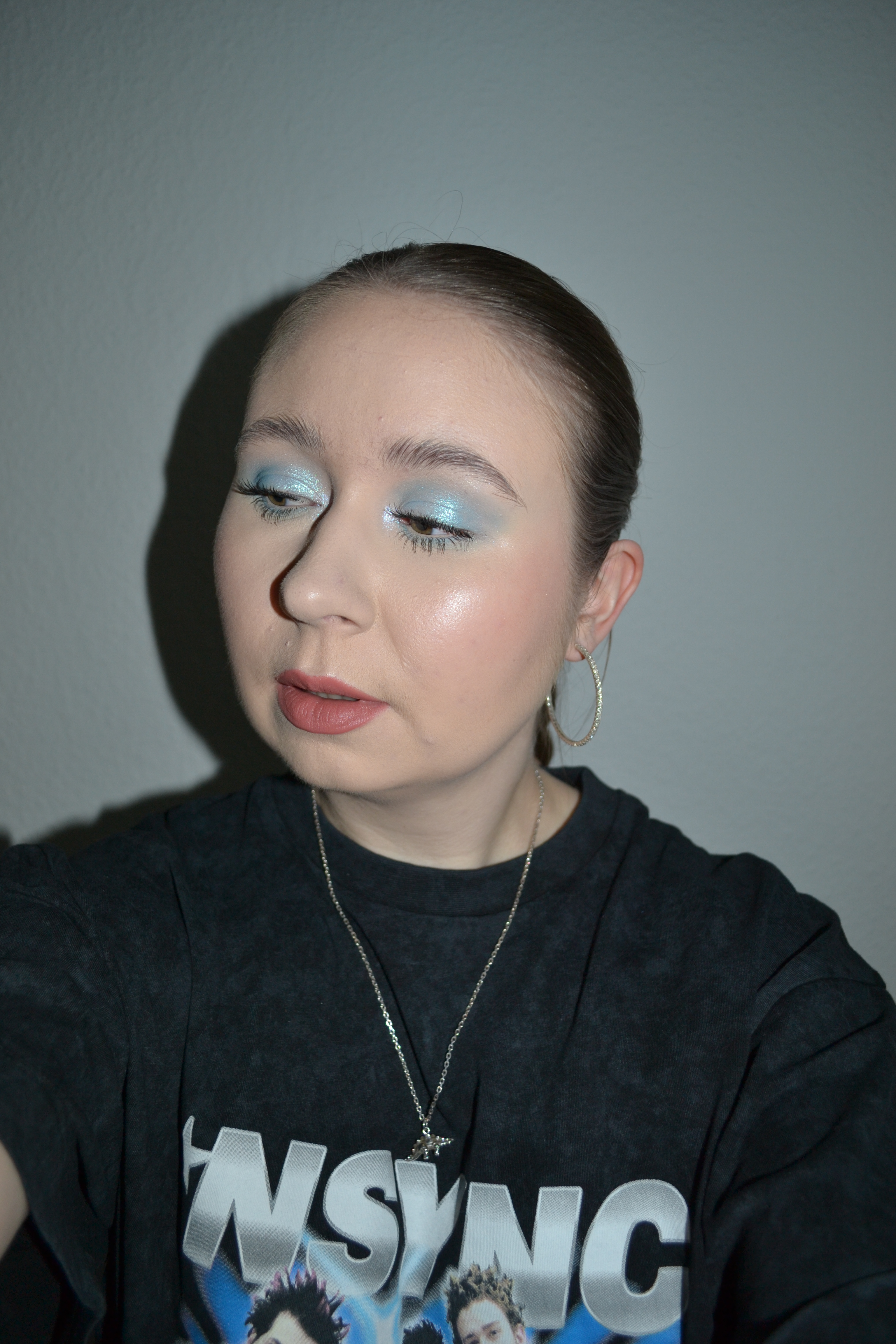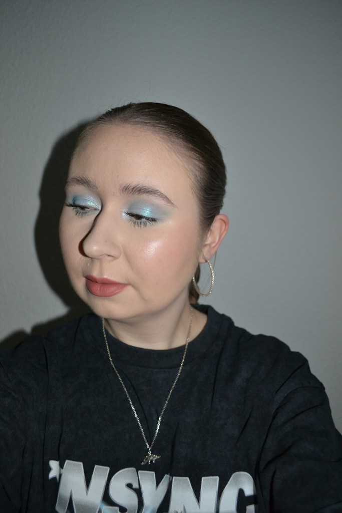 Here’s the make-up I wore with this outfit. I thought a late ’90s/early ’00s inspired icy blue eye look would pair perfectly with the *NSYNC tee.