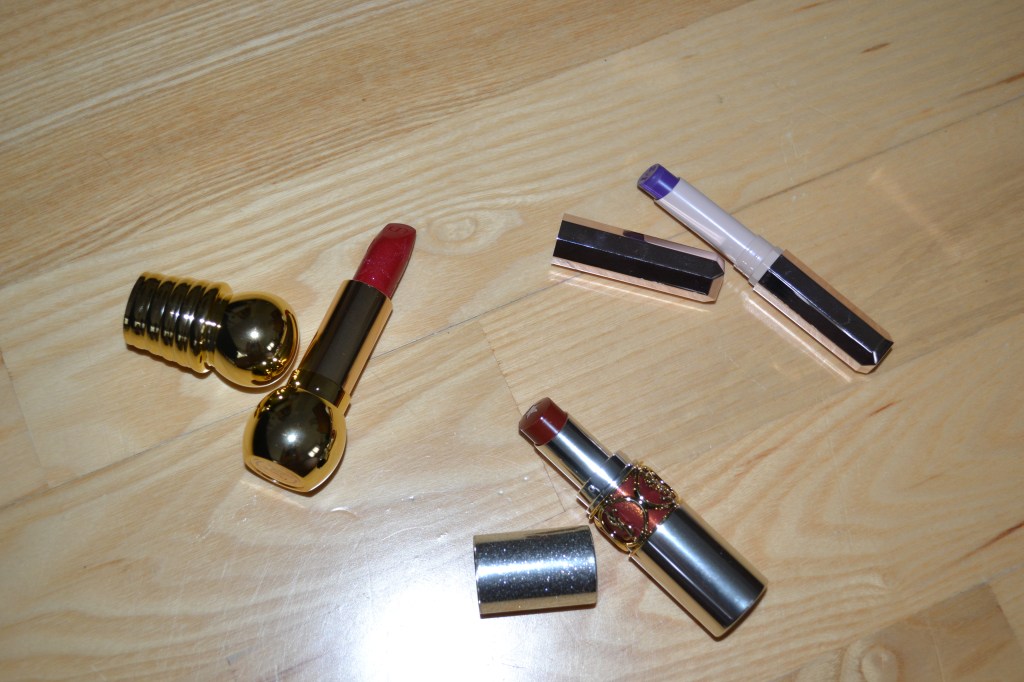 Last, but not least, I got three lipsticks. All of these lipsticks were heavily discounted. I got the Dior Golden Nights – Diorific lipstick in 072 Shimmery Red, the Yves Saint Laurent Rouge Volupte Rock’n Shine lipstick in 2 Cacao Bounce, and the Fenty Beauty Mattemoiselle Plush Matte lipstick in Violet Fury. I’ve only worn the Fenty one so far; the Dior and YSL ones are almost too beautiful to wear. However, I’m pretty sure I’ll wear them some day.