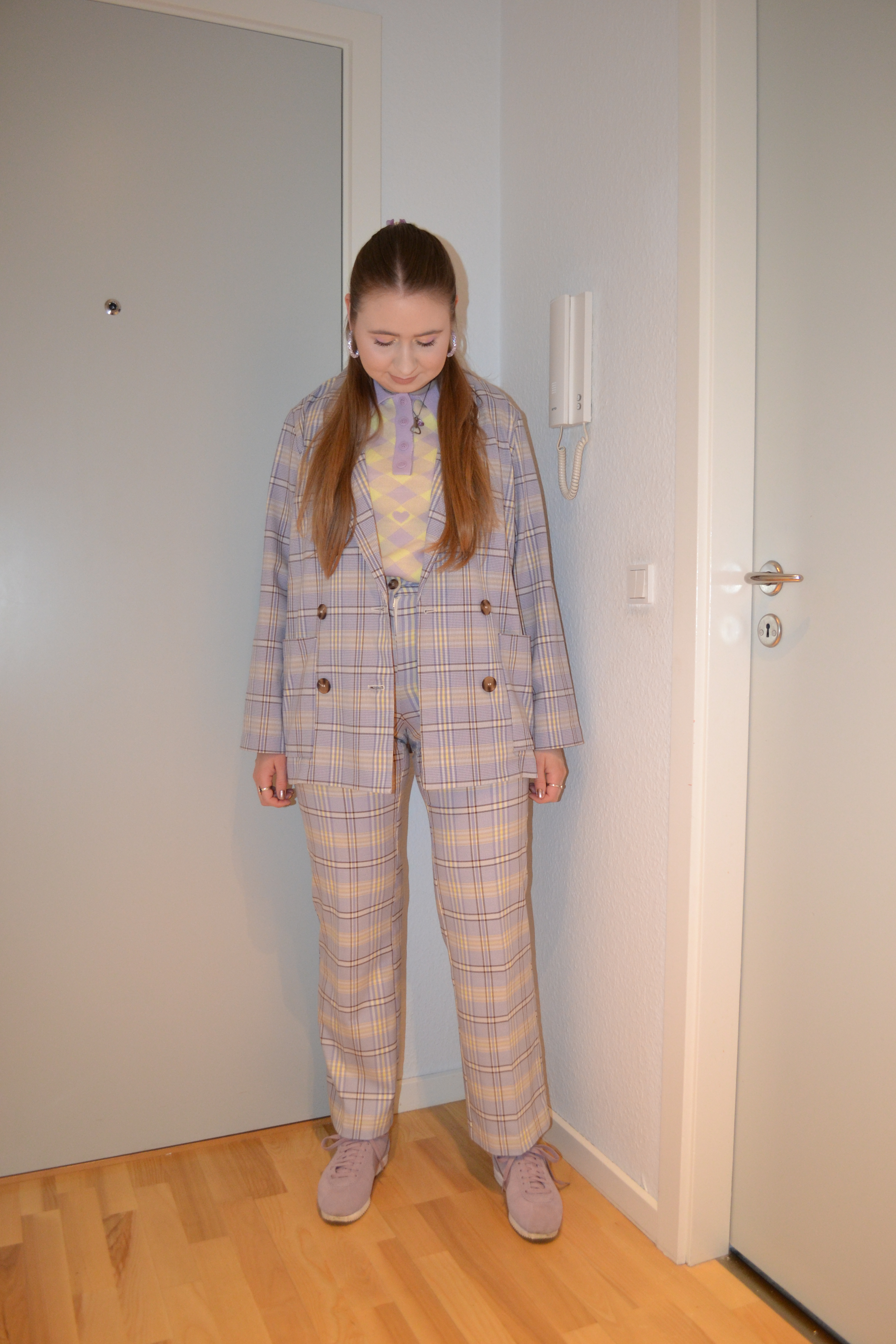 (Blazer + trousers – Monki, roll neck top – second hand, bag + heels – Asos)