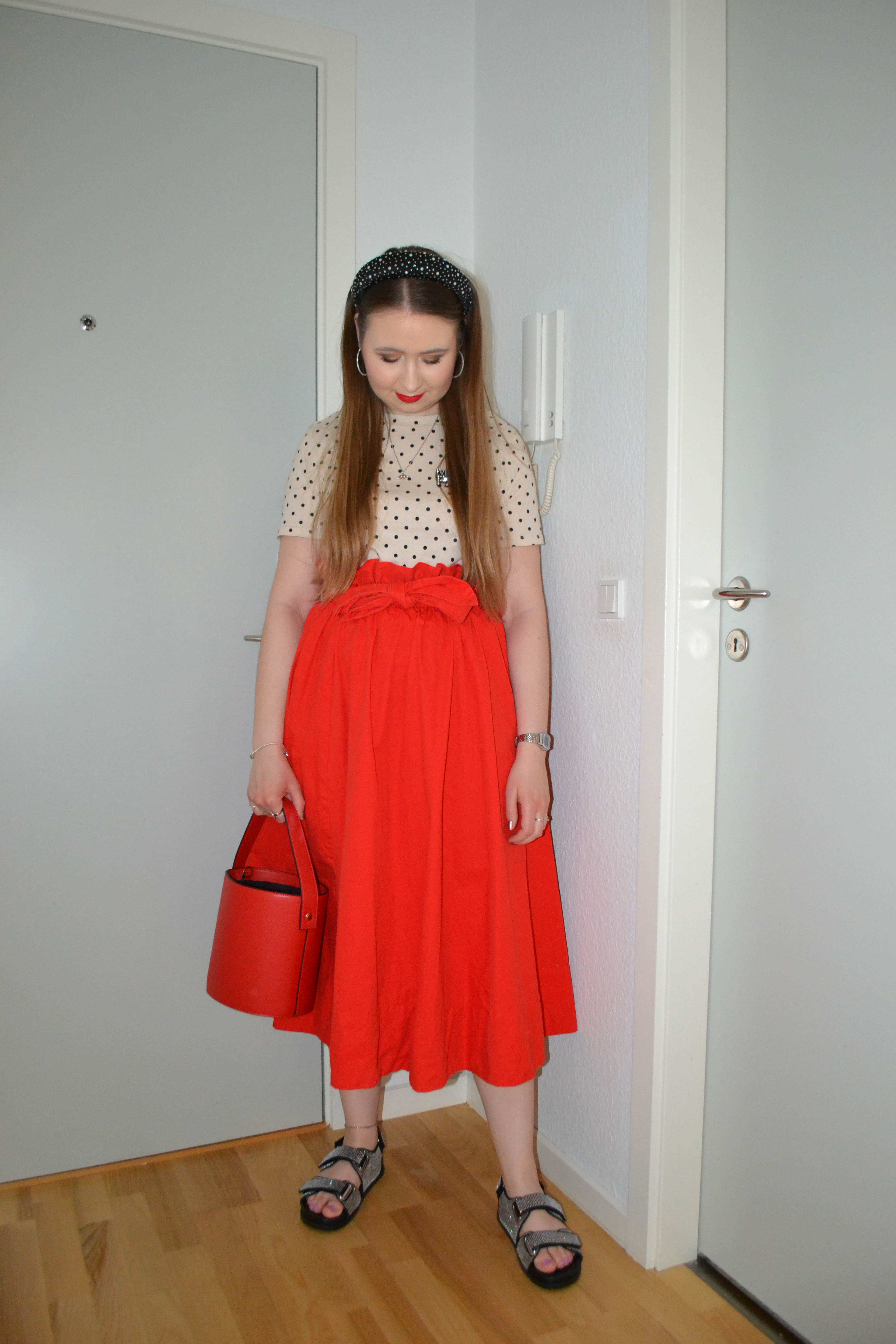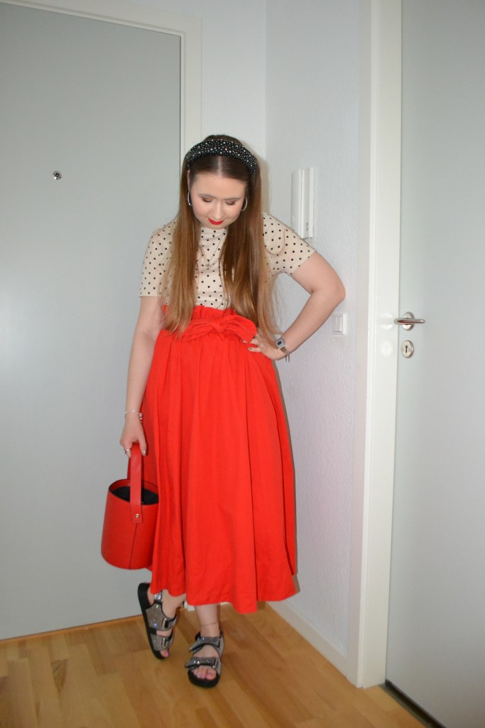 (T-shirt + skirt – H&M, bag – Topshop, sandals – Asos)