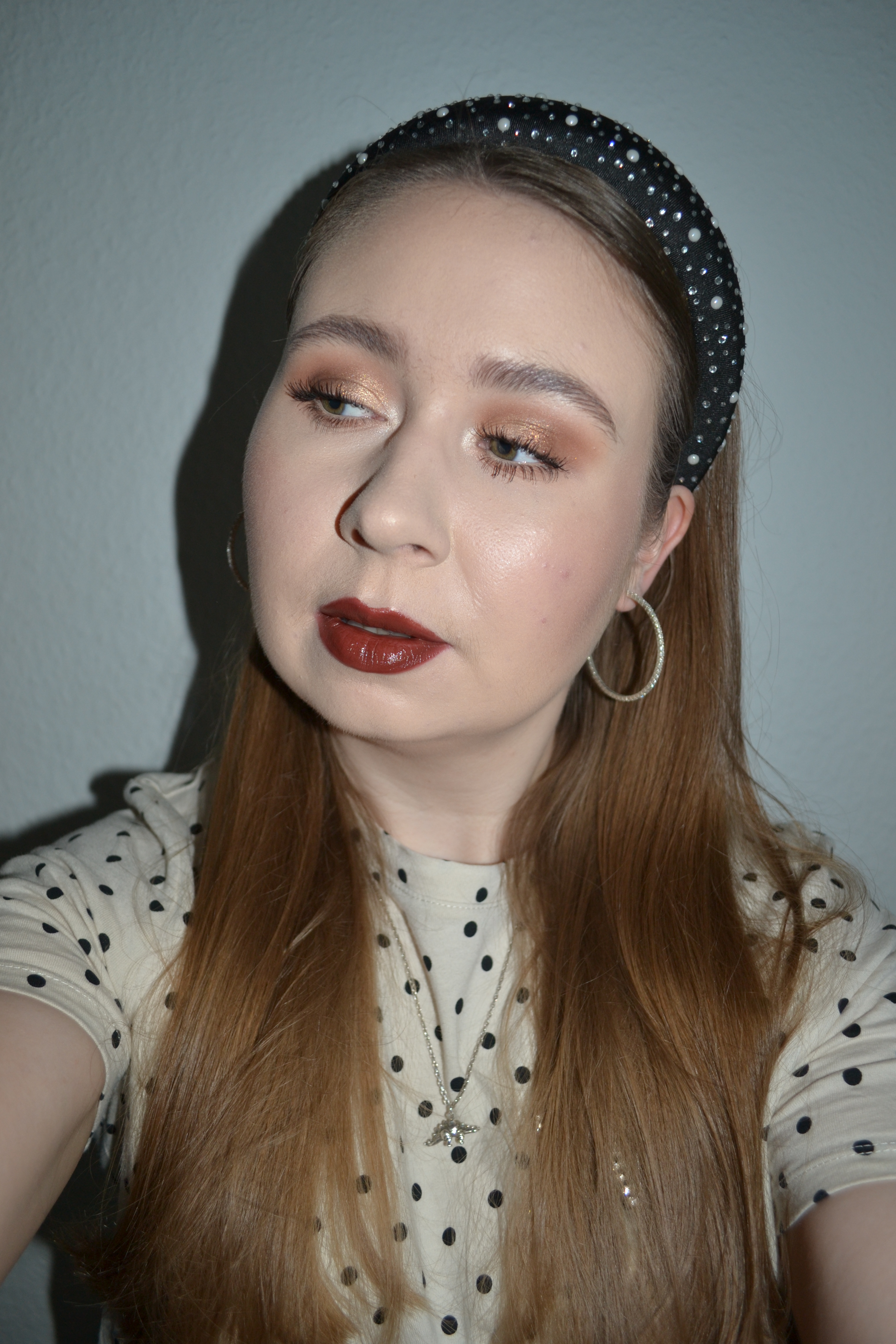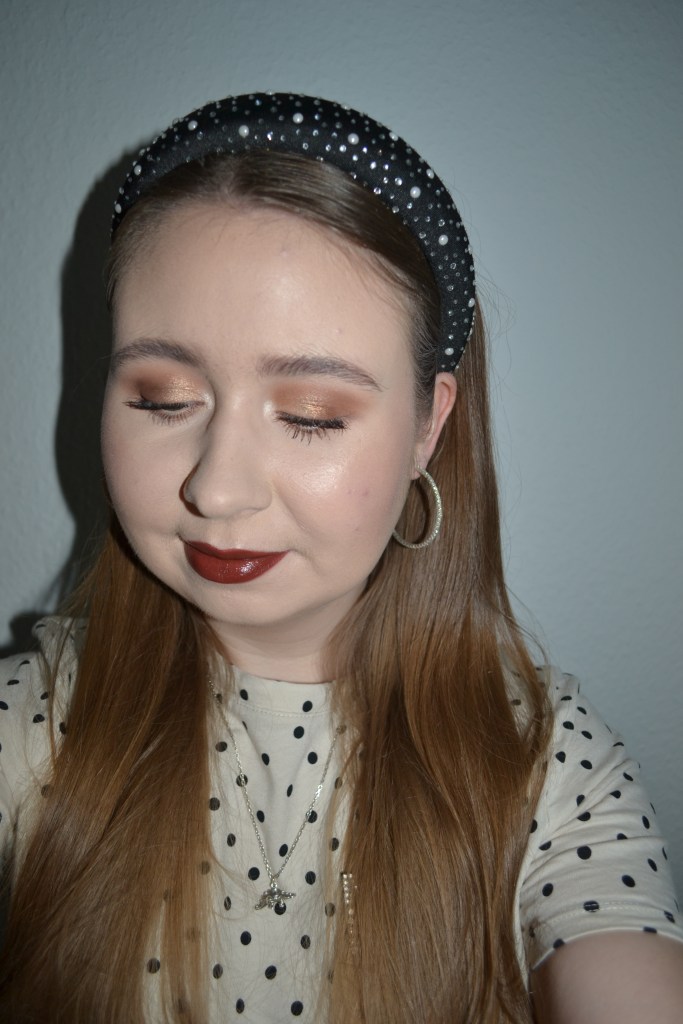 Here’s the make-up I wore with this outfit. I used both the Catrice Bronze Away to… eyeshadow palette and baked bronzing & highlighting palette for this look, and I quite like both products.