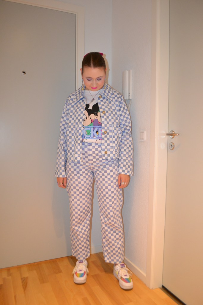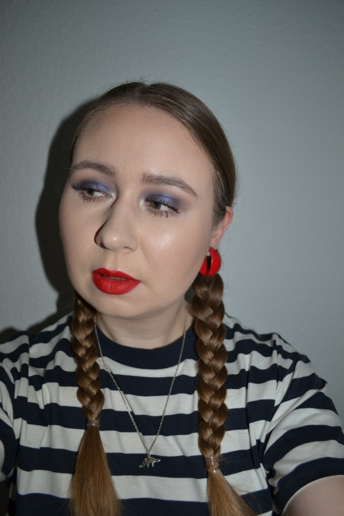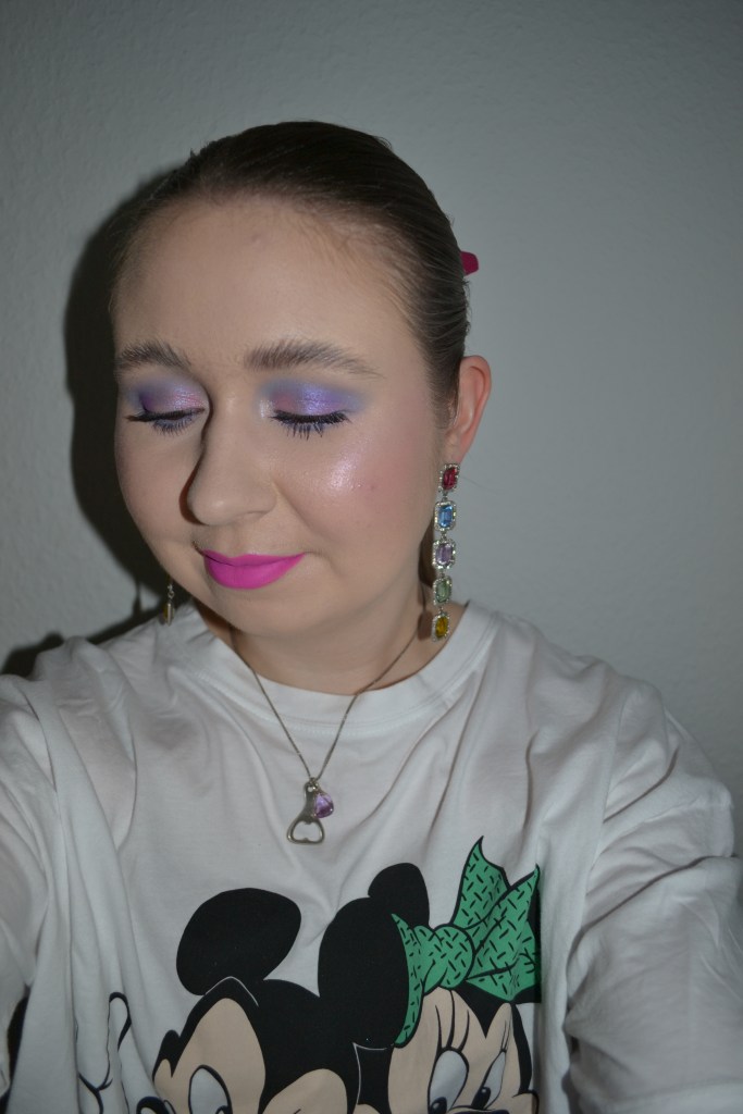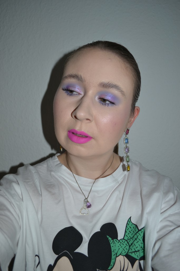 Here’s the make-up I wore with this outfit. How fun is this purple lipstick! If you didn’t already know, my favourite colour is purple, and I love all kinds of purple make-up; lipsticks, eyeshadows, blushers, you name it.