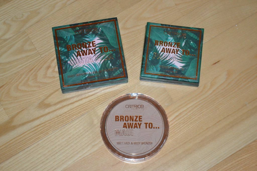 Let’s start with the Catrice Bronze Away to… collection. I picked up the Bronze Away to… eyeshadow palette in C01 Panama, the Bronze Away to… baked bronzing & highlighting palette in C01 Costa Rica, and the Bronze Away to… matte face & body bronzer in C01 Maui.