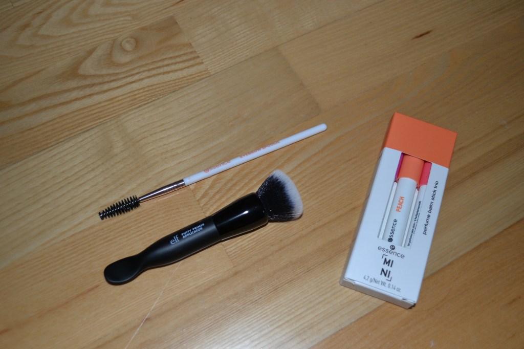 These are the last three items in this haul. I picked up one more item from e.l.f.; the Putty Primer applicator. On one end there’s a sort of spoon to scoop up the product and then there’s a brush on the other end. I’ve been using this brush/applicator for my e.l.f. Poreless Putty primer ever since I purchased it in July last year. I also picked a new spoolie. This one is from Essence. And lastly, I picked up a back up of the Essence Mini perfume balm stick trio, because I’ve enjoyed this product so much.