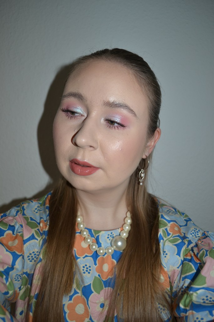 (Base: primer – NYX Angel Veil primer, foundation – Maybelline Dream Urban Cover foundation (shade: 100 Warm Ivory), concealers – L’Oréal Infaillible More Than Concealer (shade: 322 Ivory) + Essence Skin Lovin’ Sensitive concealer (shade: 05 Fair), powders – Jeffree Star Magic Star Luminous Setting Powder in Translucent + Essence Skin Lovin’ Sensitive mineral powder (shade: 01 Translucent). Face make-up: bronzer – Essence Hello, Good Stuff! matte & glow bronzer in 10 Cocoa-Cool, blushers – MAC Mineralize blush in Modest Blush + Dior Backstage Glow Face Palette in 001 Universal (shade: Blush Pink), highlighter – KimChi Chic Beauty Pearl Gone Wild highlighter in 01 Hope. Eye make-up: base – MAC Pro Longwear Paint Pot in Painterly, eyeshadows – Revolution x Bratz Cloe eyeshadow palette (shades: Spaced Out + Monologue + Crush + Angel + Feathers), mascara – Essence Lash Princess curl & volume mascara, eyeliner – Revolution x Bratz Jade eye pencil. Eyebrows: Anastasia Beverly Hills Brow Freeze. Lips: Revolution x Bratz lip crayon in Cloe + Revolution x Bratz Maxi Plump lipgloss in Cloe)