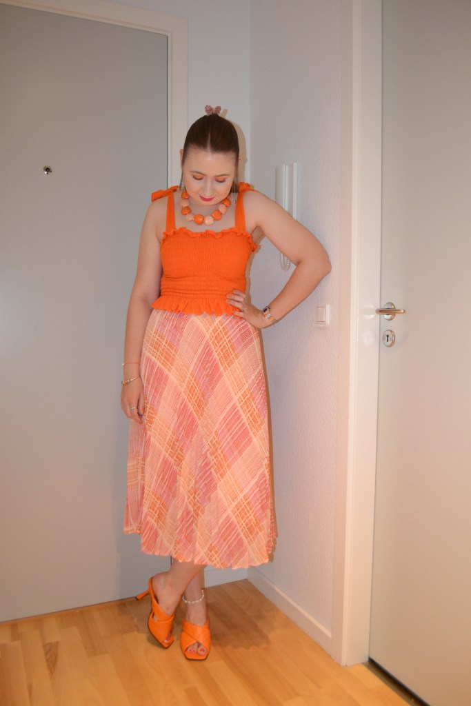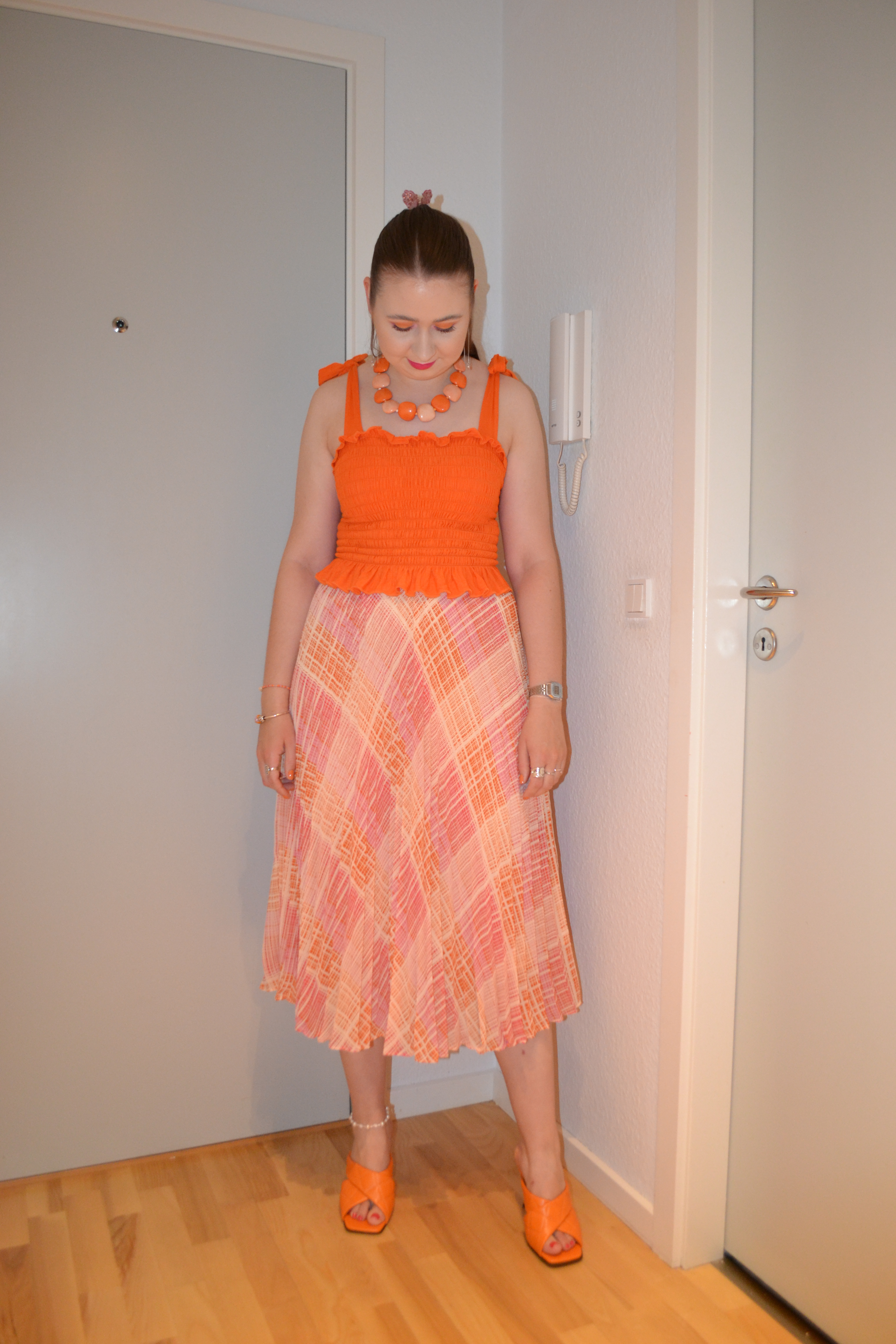 Here’s what I wore Thursday September 9. I just love an orange and pink look; especially in the summer (even though September might not actually be considered summer, but the weather was definitely summery).