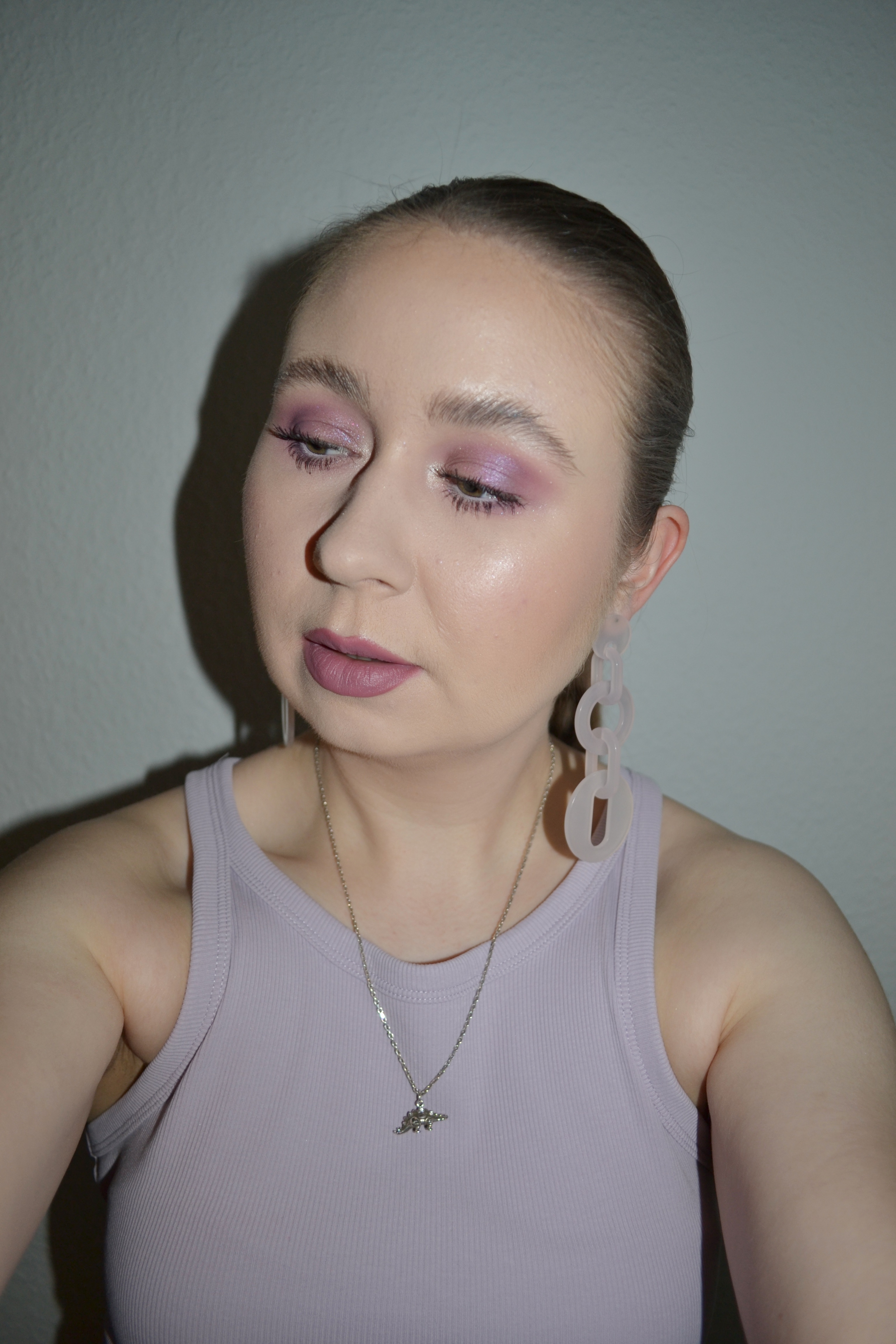 Here’s the make-up I wore with this outfit. A nice mauve lilac monochromatic make-up look. Maybe I should wear these kinds of shades again soon.