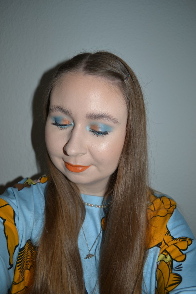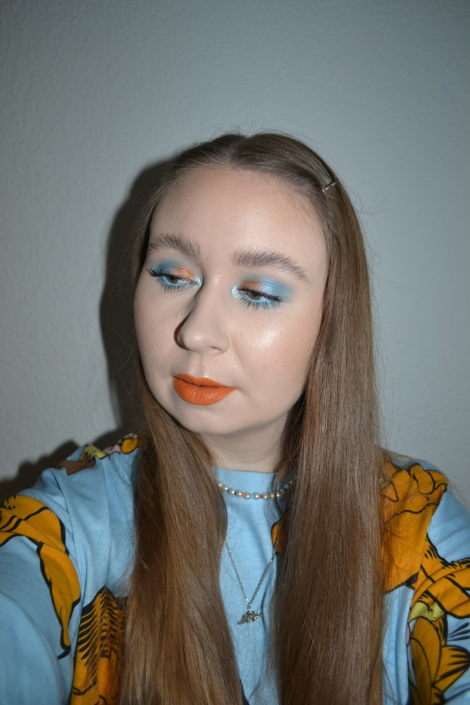 Here’s the make-up I wore with this outfit. I’m really into this colour combo; bright blue and orange are so pretty together.