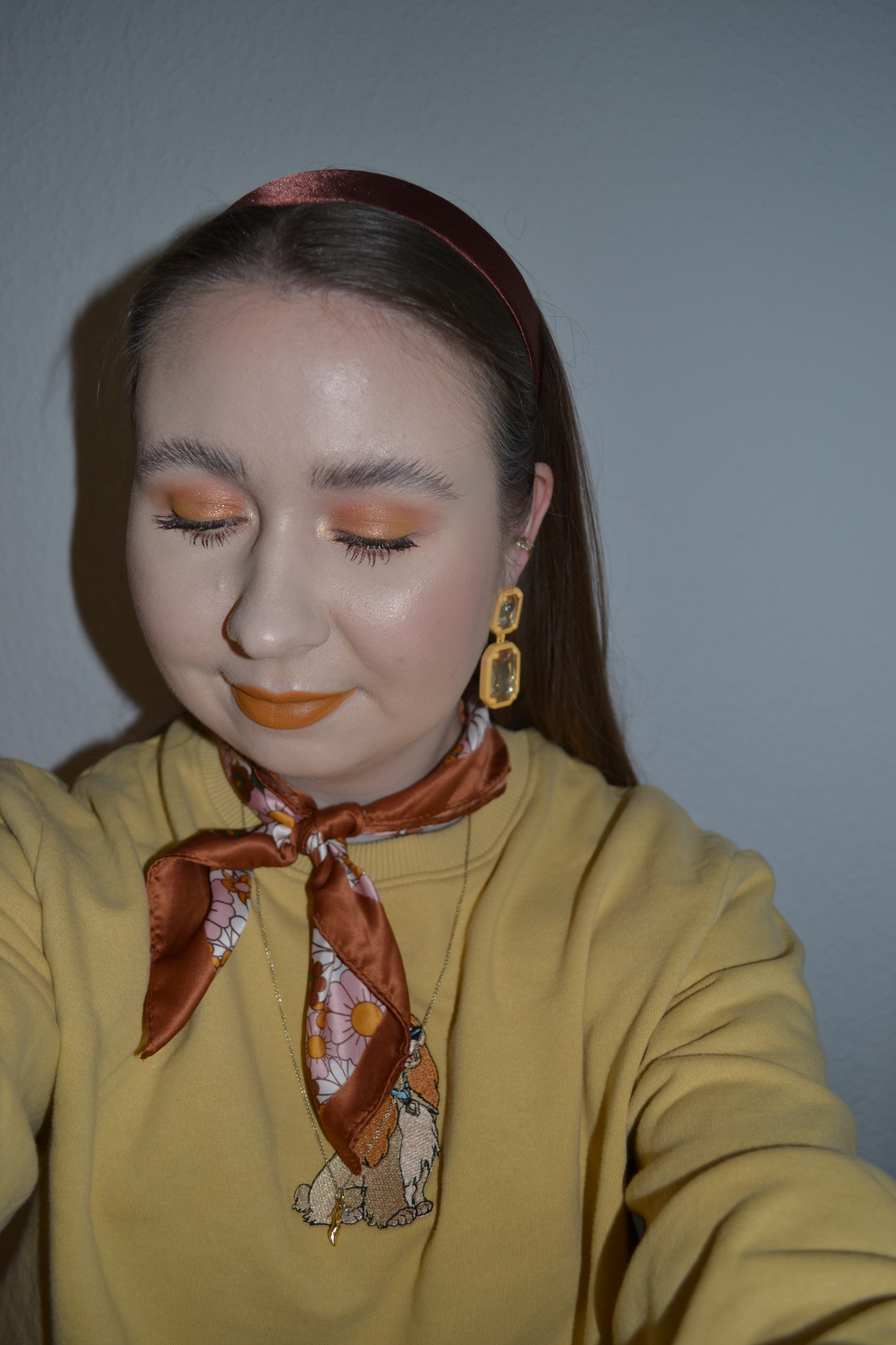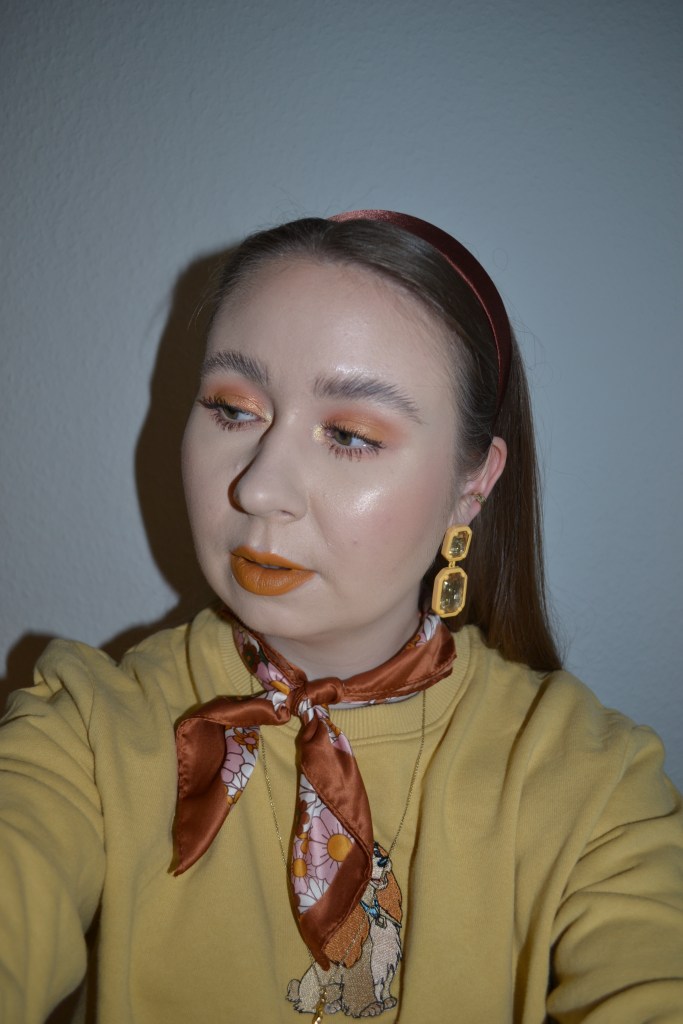Here’s the make-up I wore with this outfit. You might know that I love a monochromatic make-up look, and I think this might be my first mustard one, but I’m sure not my last one.
