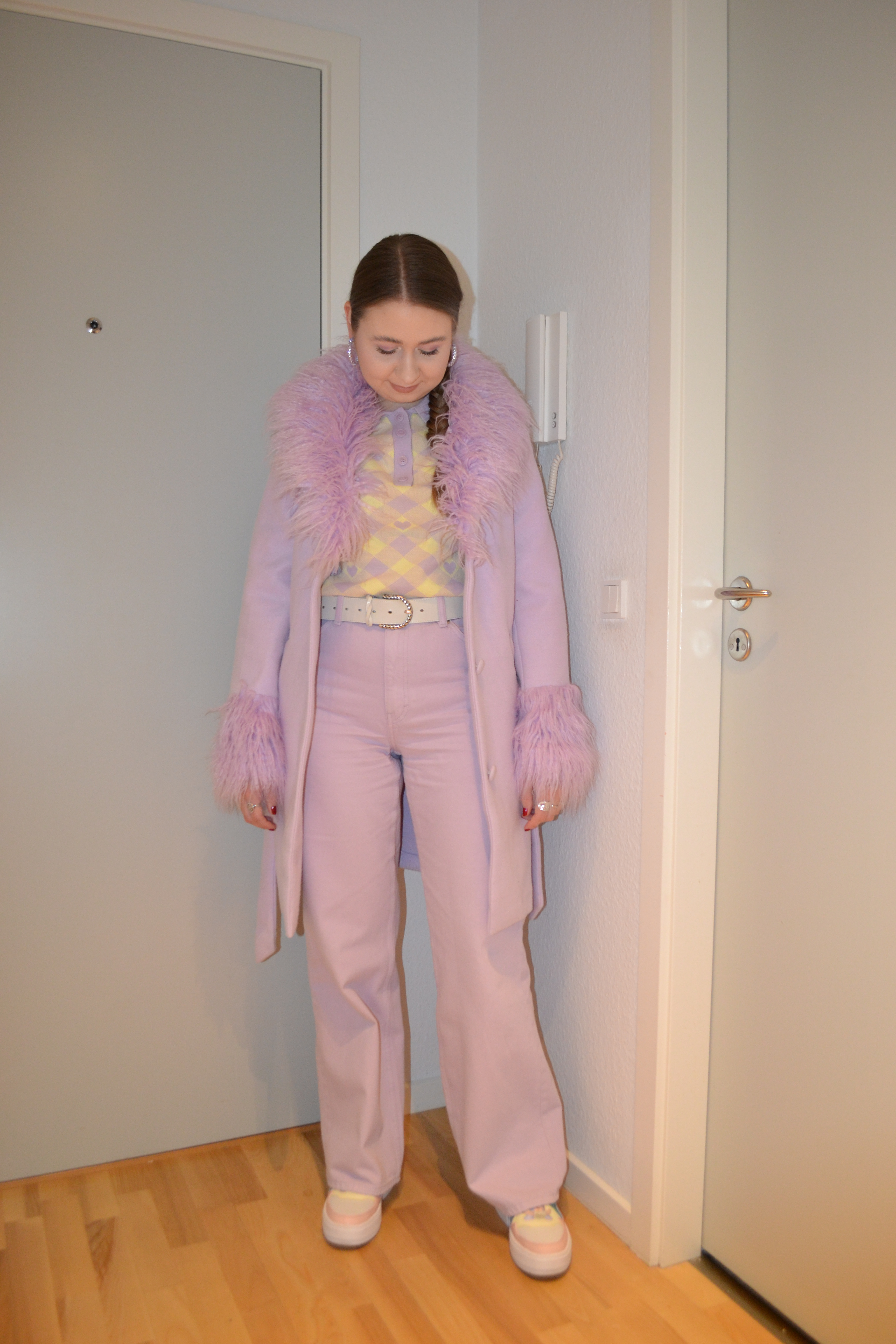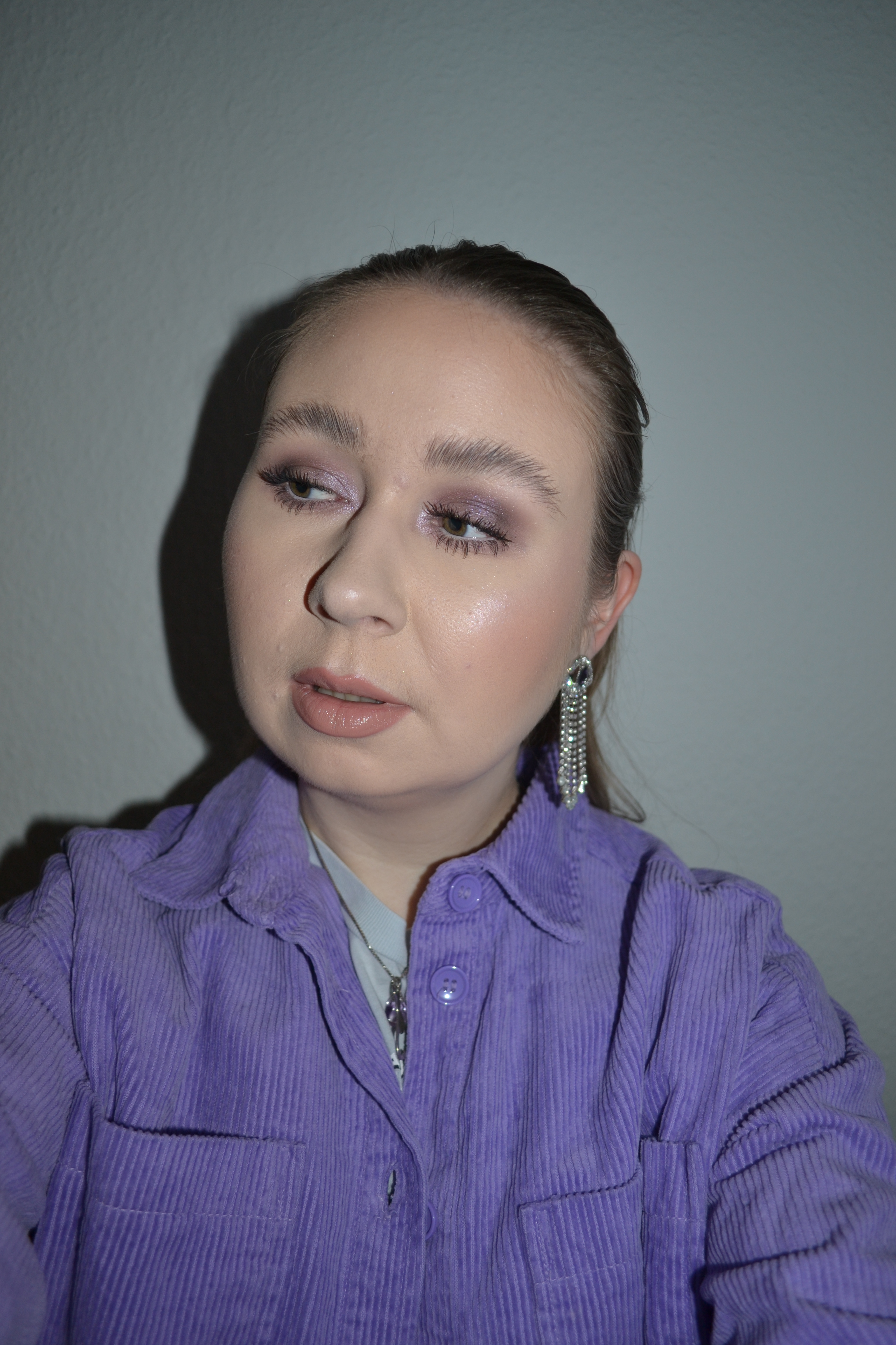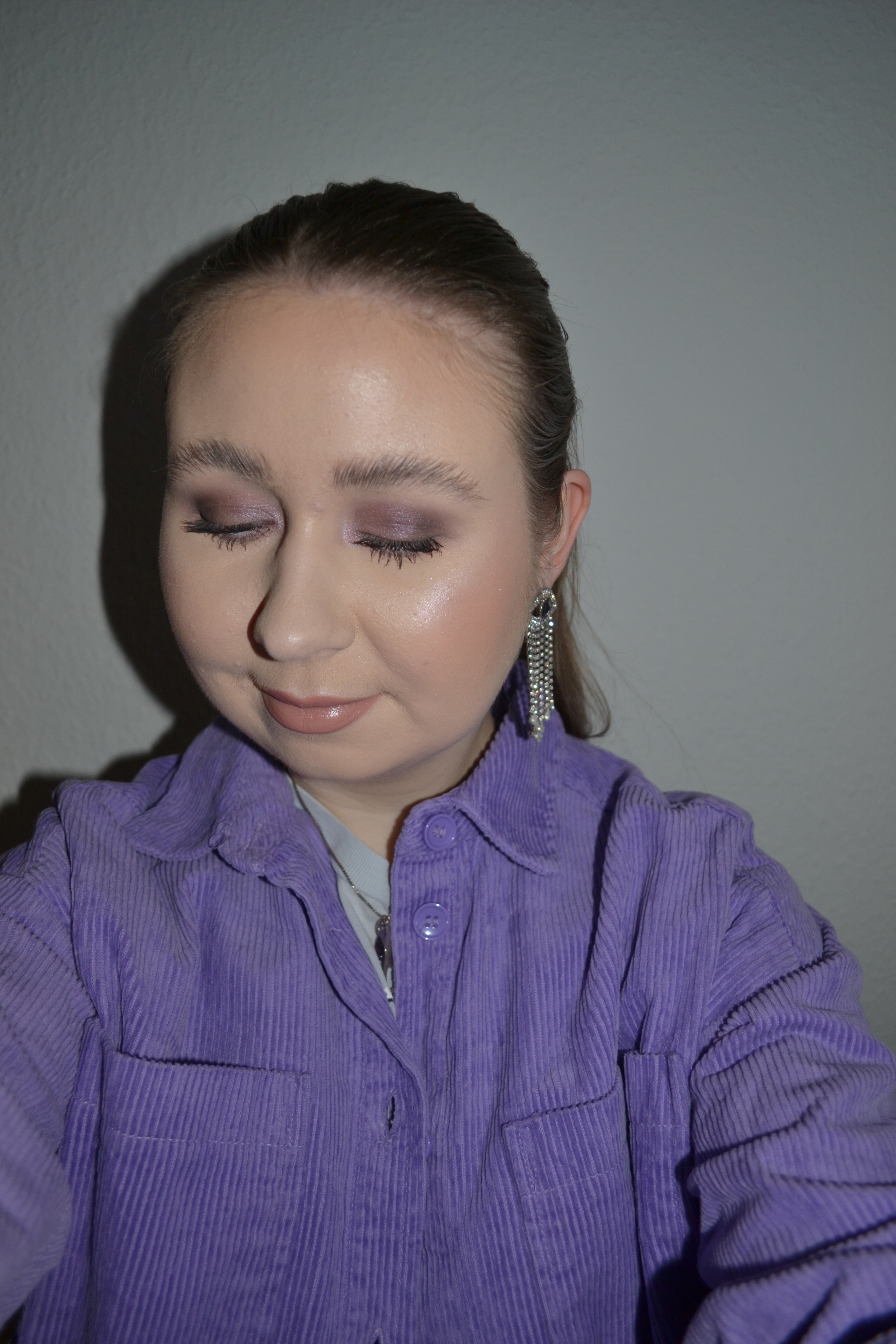 Here’s the make-up I wore with this outfit. I was wearing the Essence I Like To Mauve, It Mauve It! eyeshadow palette, and as you can see, the pigmentation is really nice. I wear a lot of purple eyeshadows, but rarely more muted, mauve purples, but I think the look turned out very pretty.