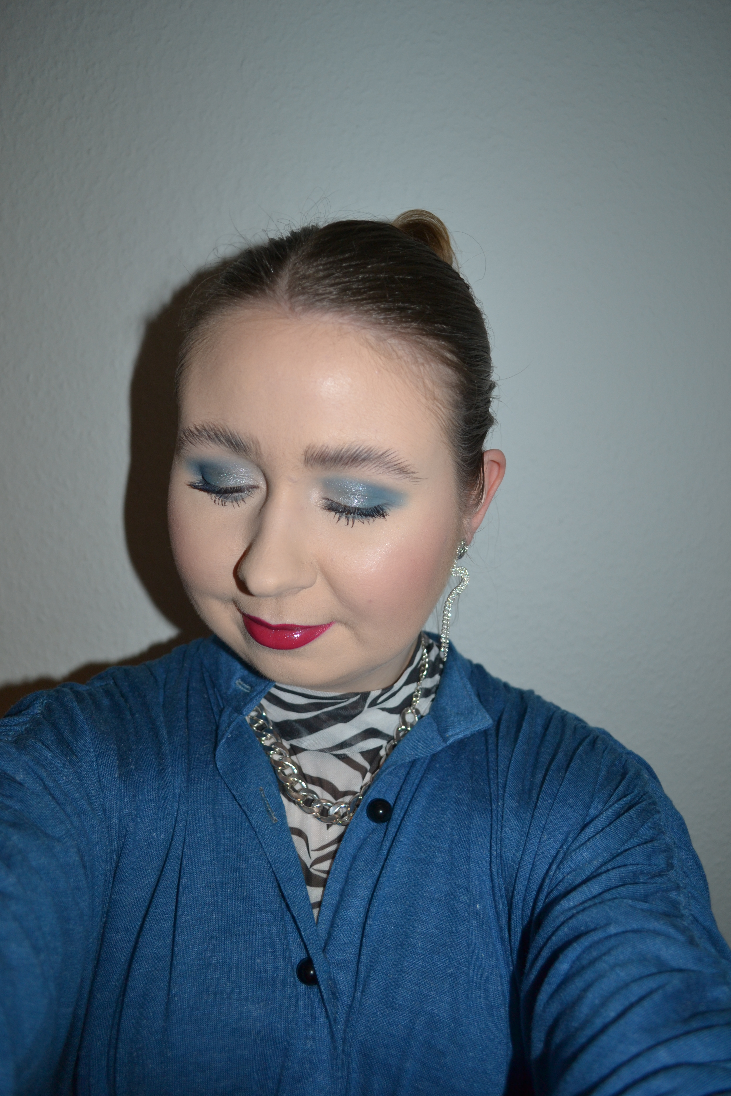 Here’s the make-up I wore with this outfit. I was wearing another one of those little 6-pan Essence eyeshadow palettes. This is the Ice, Ice Baby! palette, and I was also happy with the pigmentation of these shadows.