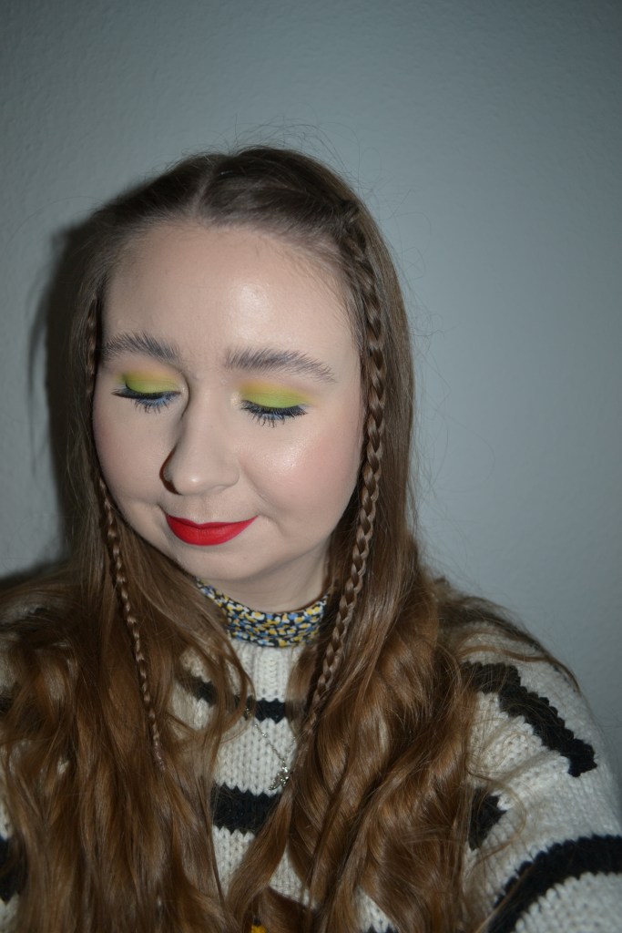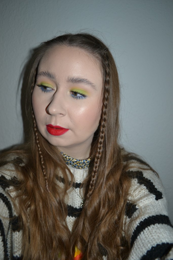 Here’s the make-up I wore with this outfit. A pretty much all matte look, which I rarely wear, but I don’t think it’s boring when it’s this colourful.