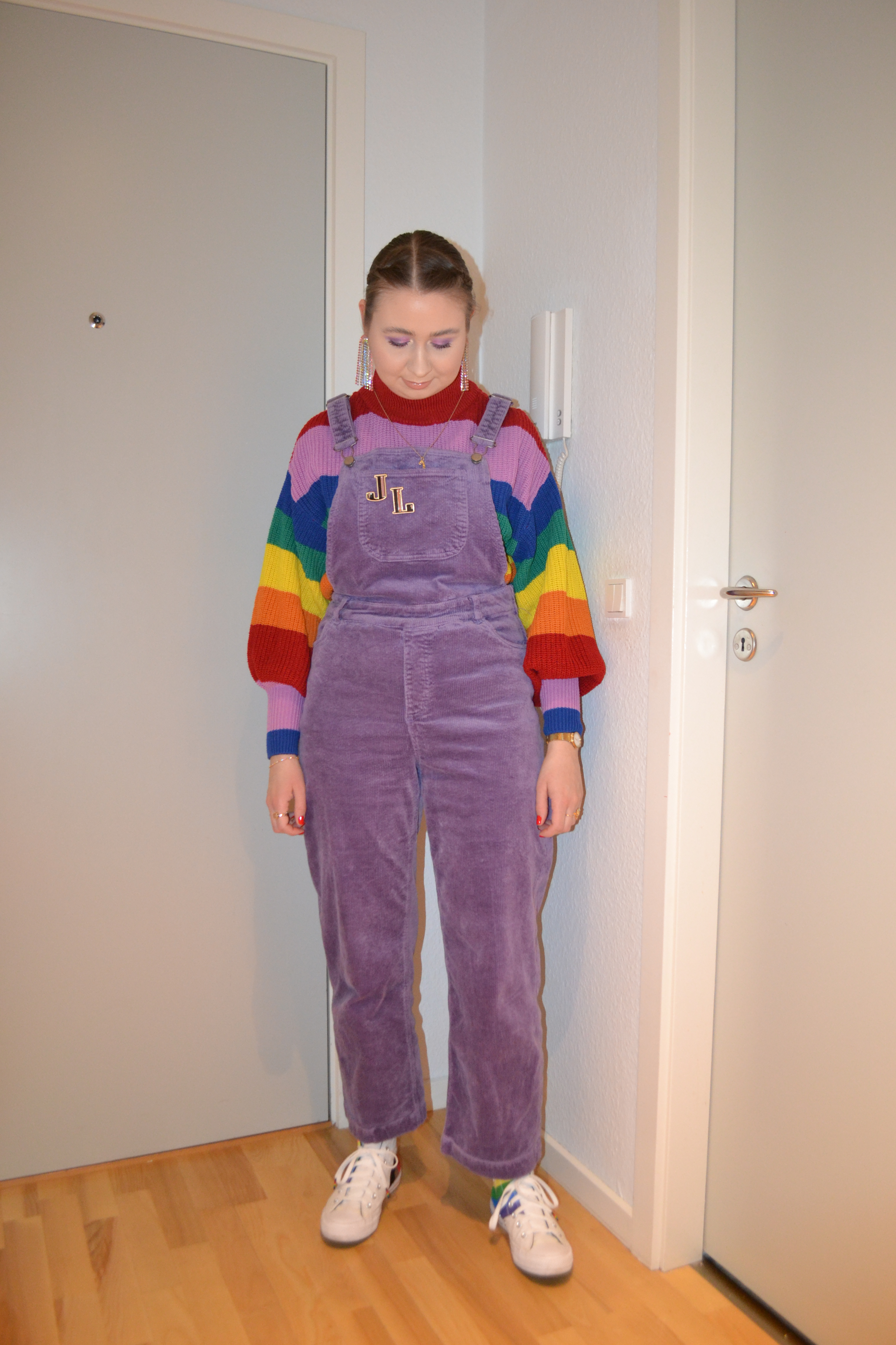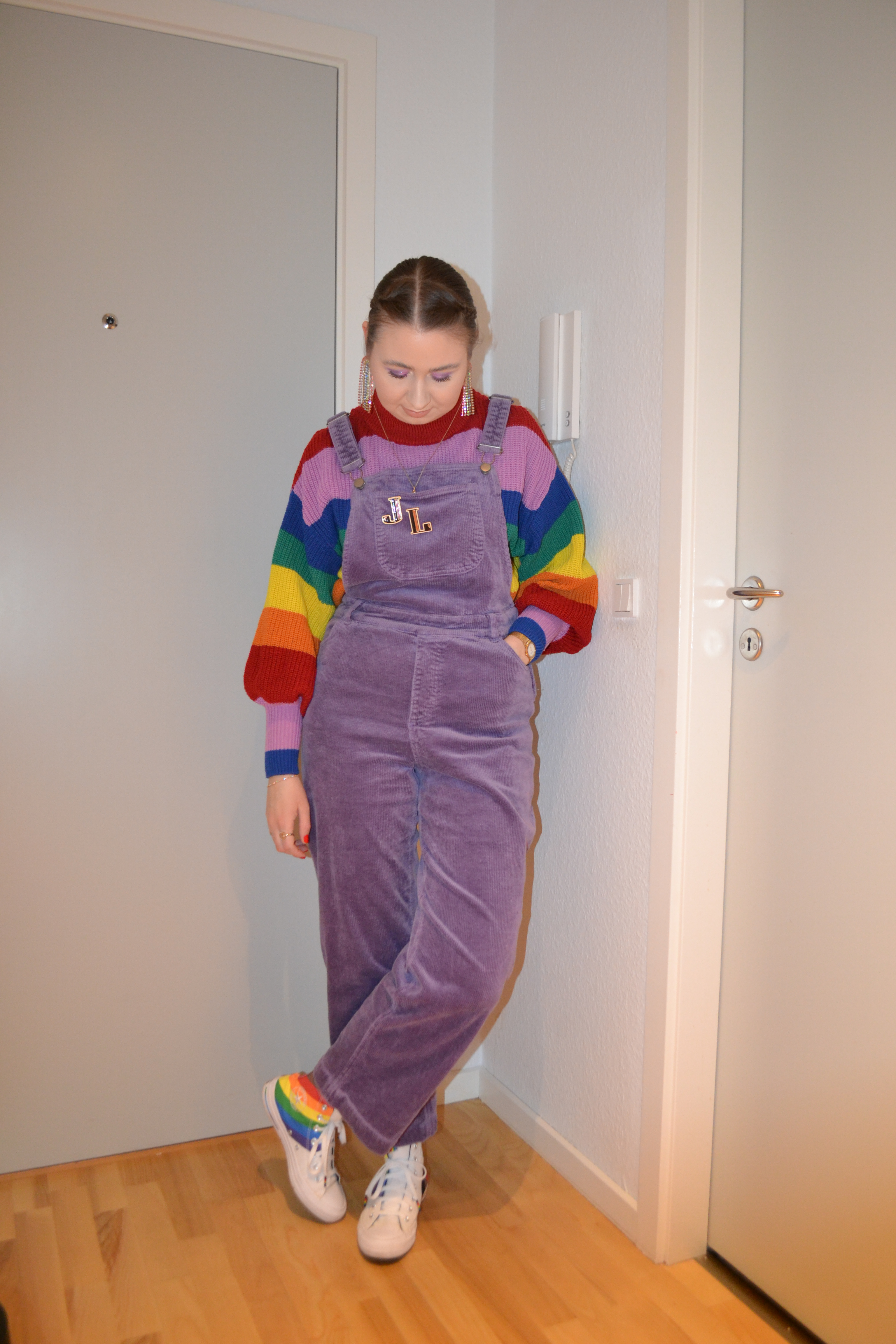 Purple heavy rainbow Posted on April 3, 2022 by Mucha-Lucha Here’s what I wore Tuesday January 11. I really like this look. It’s another rainbow inspired look, but with purple as the main colour. (Jumper + overalls – Monki, sneakers – Converse) Share this: Click to share on X (Opens in new window) X Click to share on Facebook (Opens in new window) Facebook Like Loading... Related