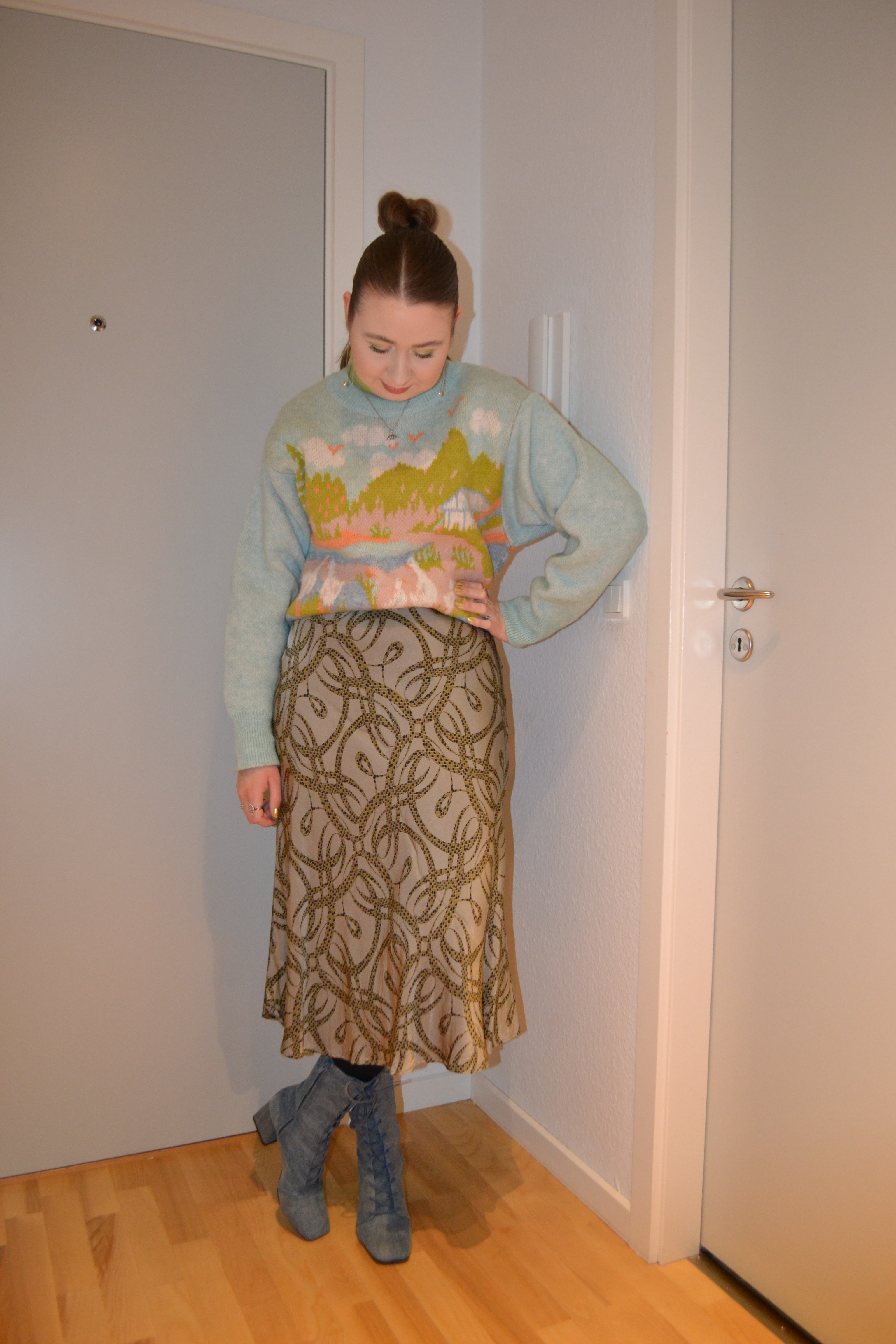 Figured it out Posted on April 11, 2022 by Mucha-Lucha Here’s what I wore Friday January 21. I’ve had difficulties styling this skirt in the past, but I think I’ve figured out which kind of items and colours to pair with it. (Jumper – Zara, roll neck top – second hand, skirt – H&M, boots – Monki) Share this: Click to share on X (Opens in new window) X Click to share on Facebook (Opens in new window) Facebook Like Loading... Related