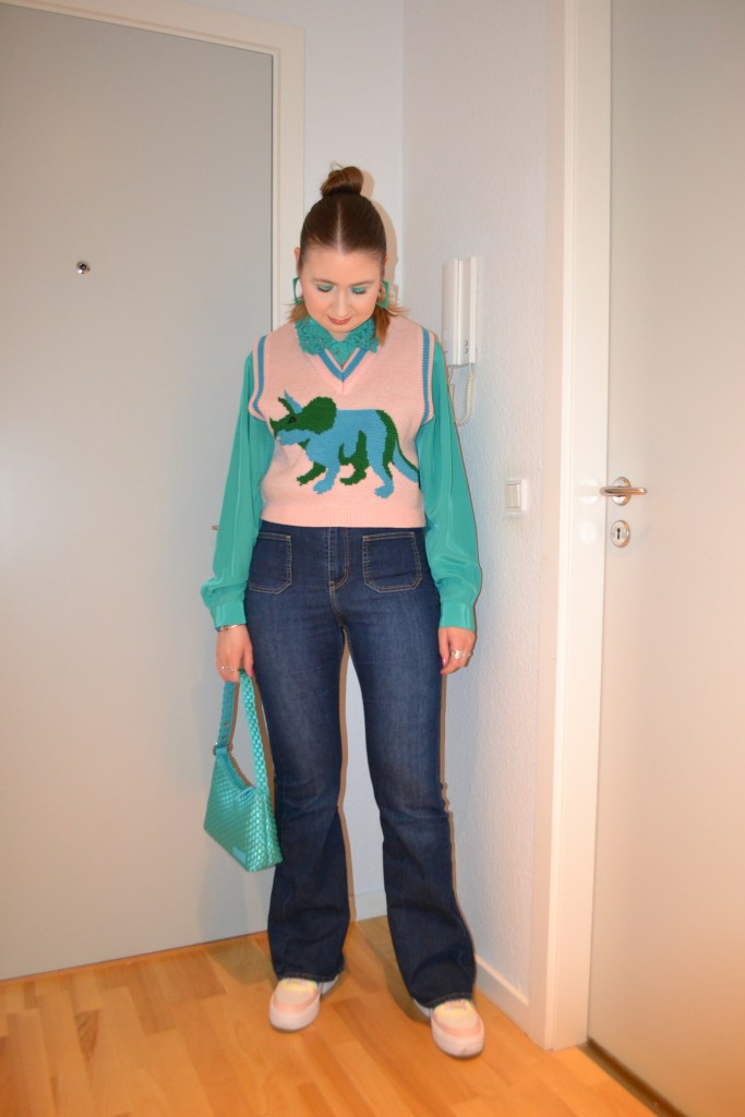 (Shirt – second hand, sweater vest – Reclaimed Vintage, jeans – H&M, bag – Silfen, sneakers – Buffalo)