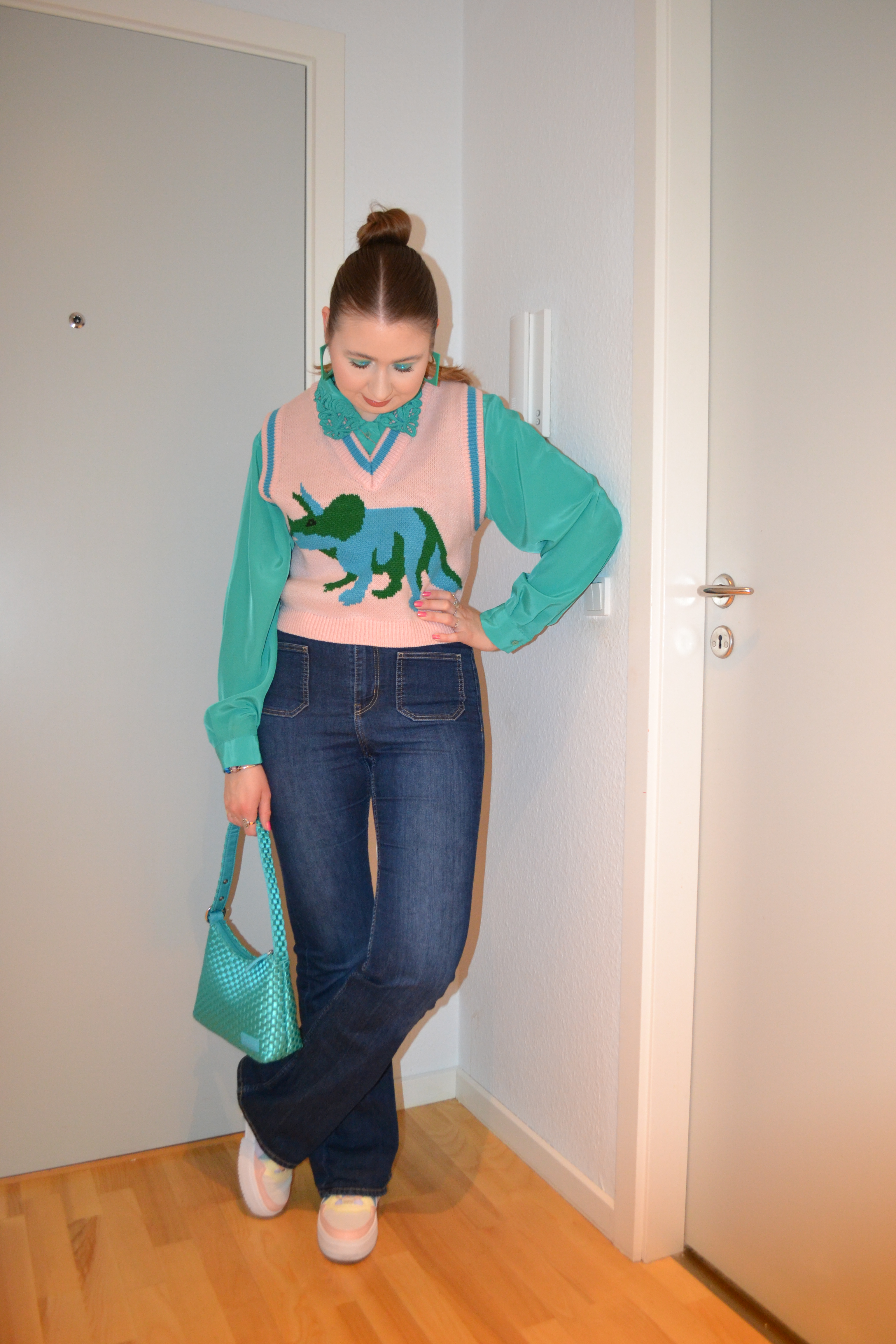 (Shirt – second hand, sweater vest – Reclaimed Vintage, jeans – H&M, bag – Silfen, sneakers – Buffalo)
