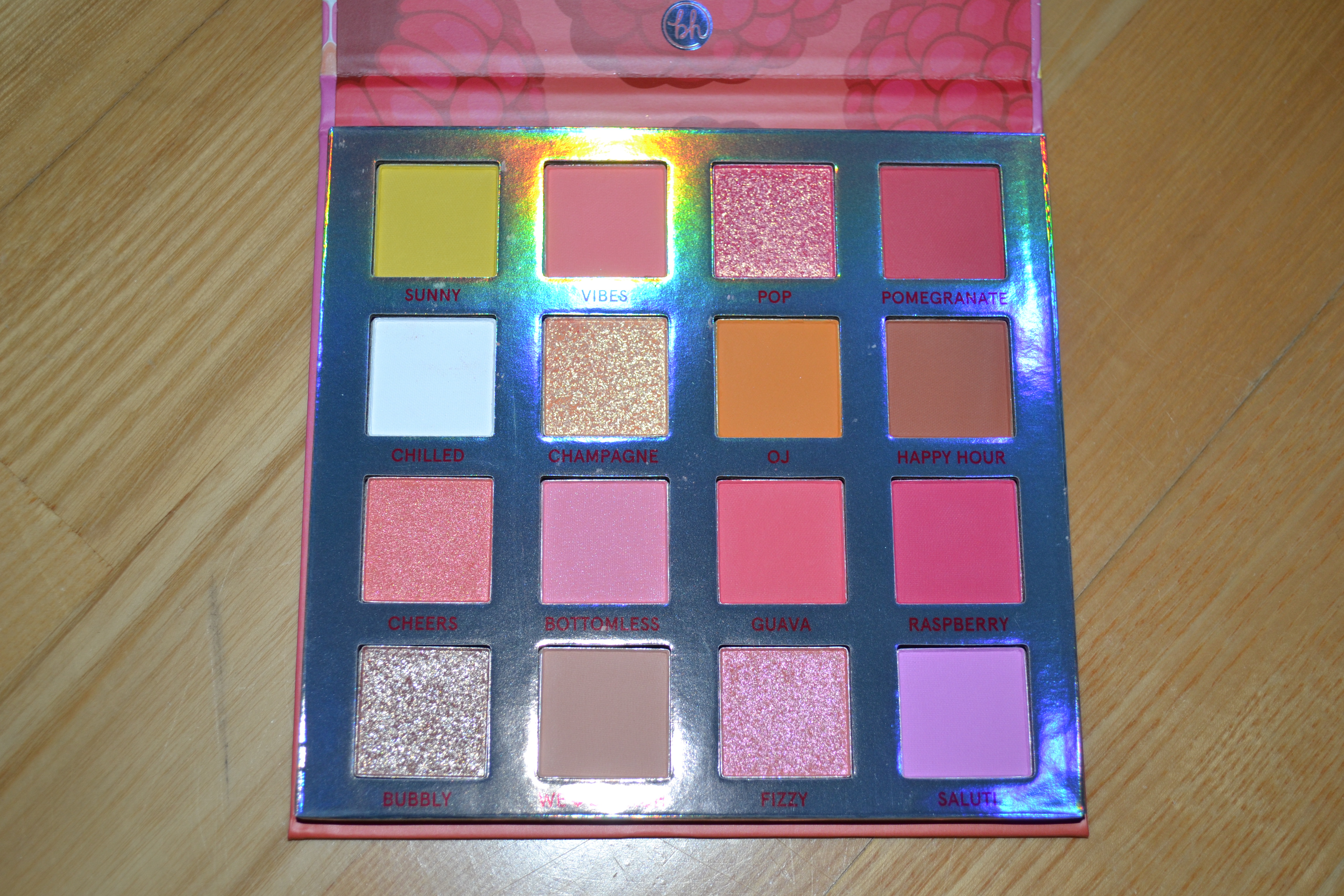 This is the Mimosa palette; a fun and bright mainly pink palette.