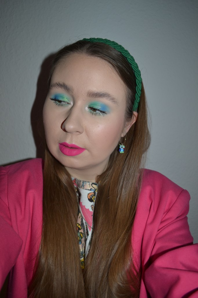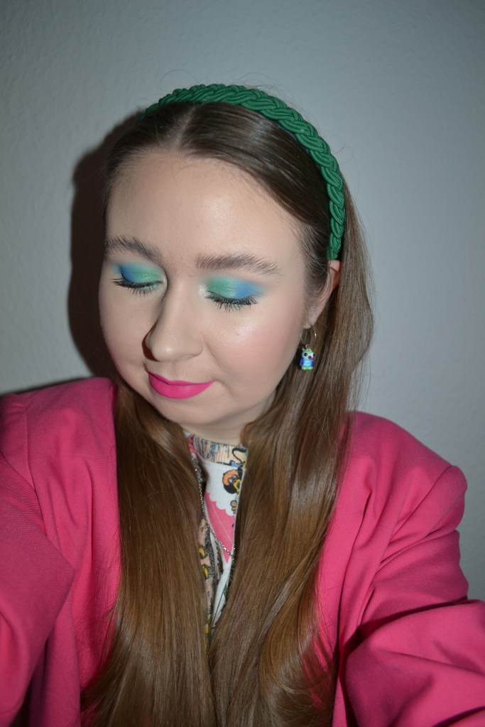 Here’s the make-up I wore with this outfit. A very colourful make-up look to go with a very colourful outfit.