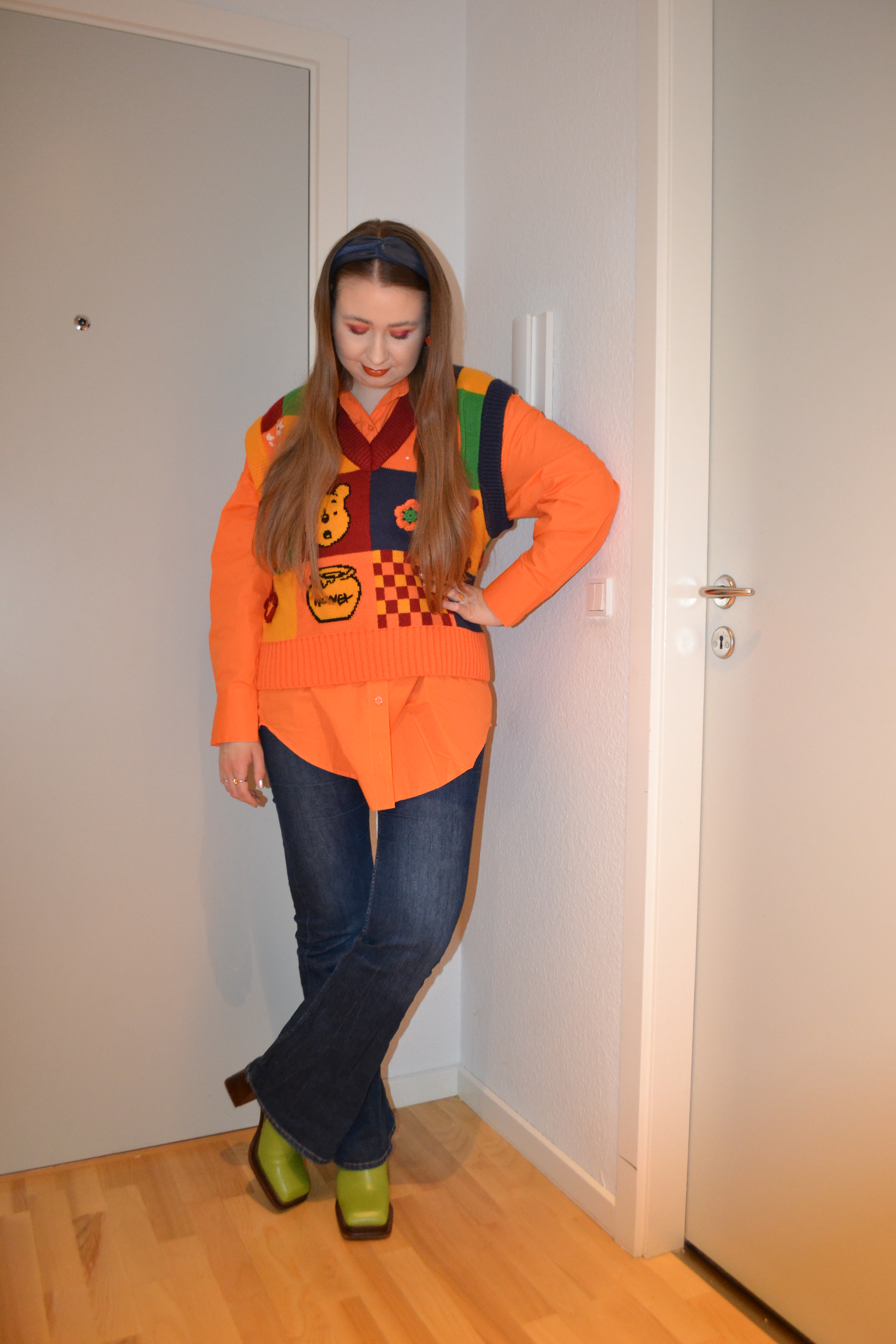 Winnie the Pooh Posted on June 7, 2022 by Mucha-Lucha Here’s what I wore Thursday March 31. How cute is this Winnie the Pooh sweater vest?! Very cute, if you ask me, and I love the colour scheme of this look too. (Sweater vest – Zara, shirt + jeans – H&M, boots – Asos) Share this: Click to share on X (Opens in new window) X Click to share on Facebook (Opens in new window) Facebook Like Loading... Related
