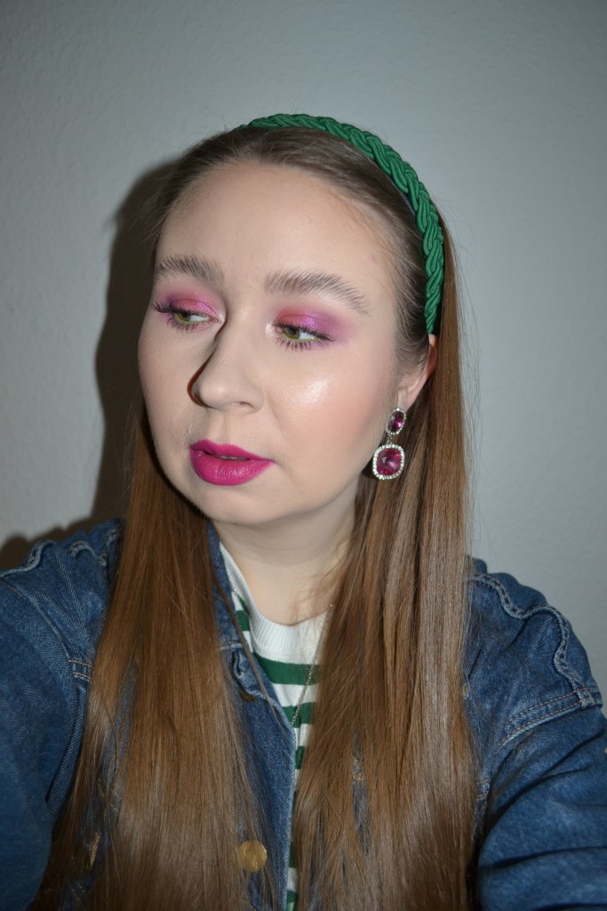 Here’s the make-up I wore with this outfit. It’s not often that I get to do a monochromatic fuchsia look, but I thought it would be perfect with this particular outfit.