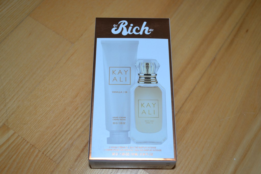 I also purchased the KAYALI Get Rich kit, which includes a 30 ml VANILLA | 28 hand cream and a 10 ml Invite Only Amber | 23 Eau de Parfum. The Invite Only Amber scent is a slightly deeper scent.