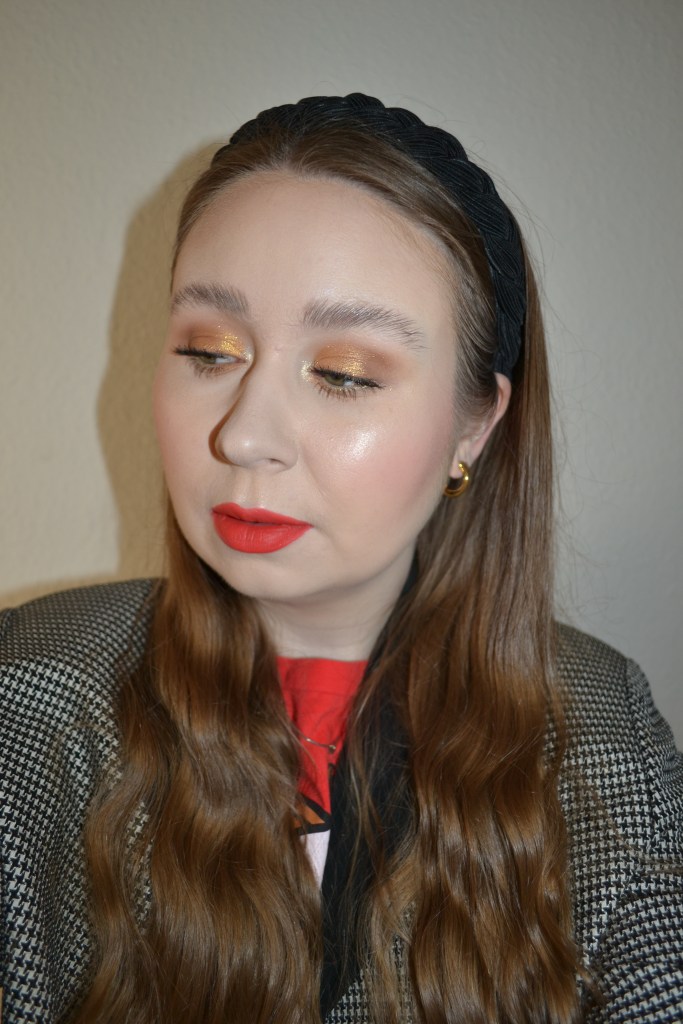 Here’s the make-up I wore with this outfit. I don’t know what came over me at this time, but I wore another golden eye look. This time I used the Natasha Denona Gold palette, which seemed like an obvious choice for a golden eye look.