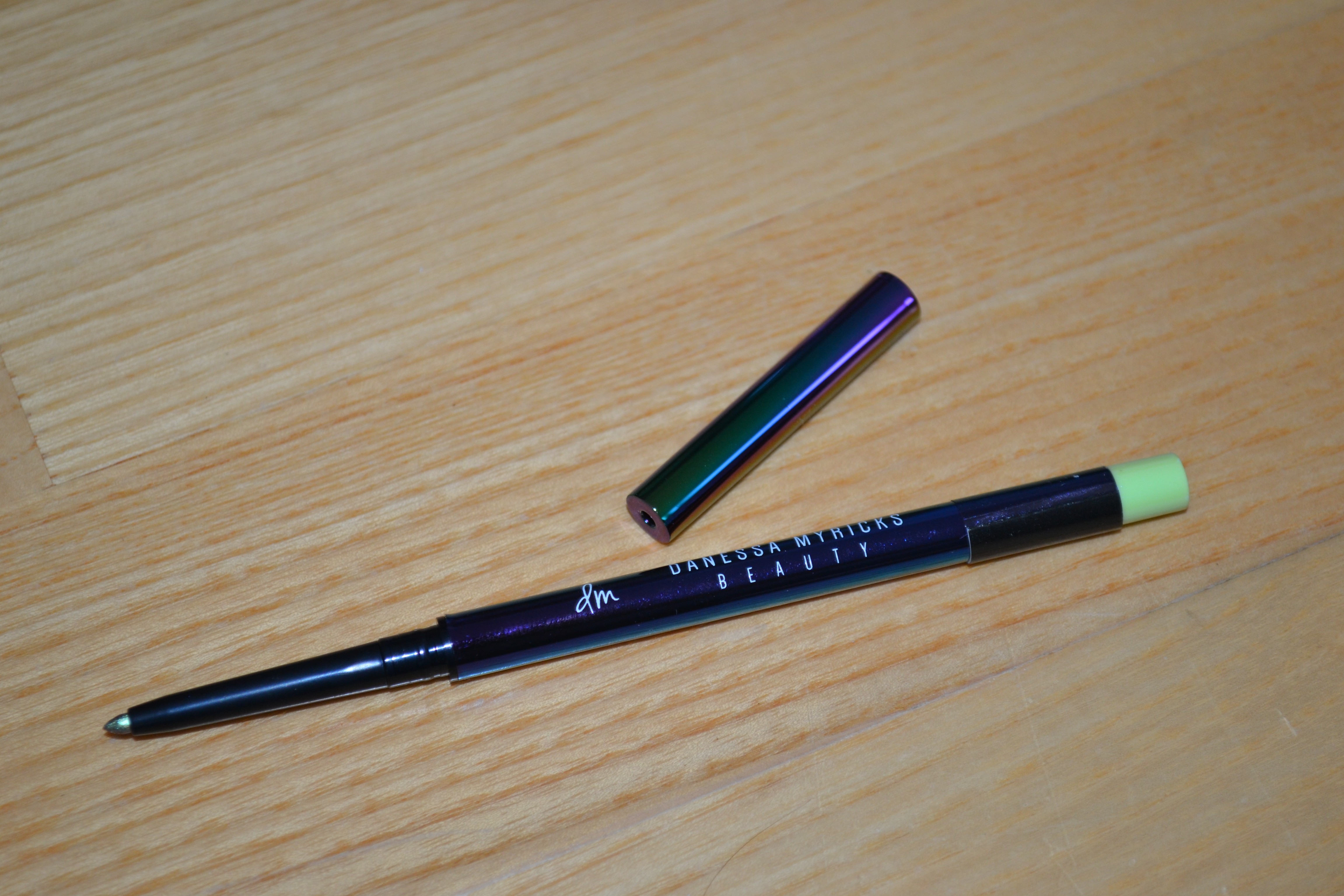 The Jeffree Star Cosmetics Eye Gloss Powder is a beautiful sheer gold with a green shift. The Danessa Myricks Beauty Twin Flames Multichrome Pigment is a pastel pink and lime green duochrome liquid eyeshadow (I’m wearing it here), and the Danessa Myricks Beauty Infinite Chrome Pencil is described as a seafoam green and periwinkle duochrome. I guess, I’m into products that shift green:)