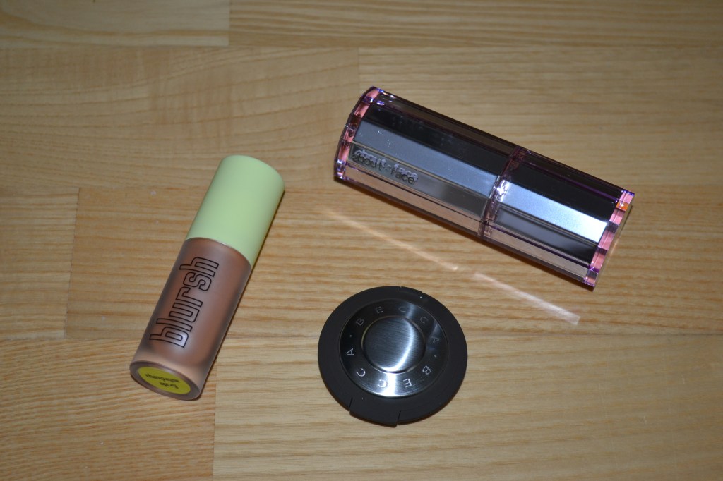I puchased three highlighters as well. I’ve already worn all three, and I love all three! Even though I own quite a few of the Made By Mitchell Blursh liquid blushers, I’m still not sure how I feel about them, but it’s a different story with this Made By Mitchell Blursh Lights liquid highlighter. I picked up the shade Champagne Spray, and even though I’ve only worn it once so far, I liked it instantly. I also got another shade of the About-Face Light Lock Highlight Fluid, because I love the formula. This time I picked up the shade Unrestrained, which is beautiful soft lavender. And the last highlighter, I purchased, is the famous Becca Shimmering Skin Perfector pressed highlighter in Champagne Pop. It is now called Smashbox x Becca, but the product is the same. I picked up the mini size, because I never go through an entire highlighter.
