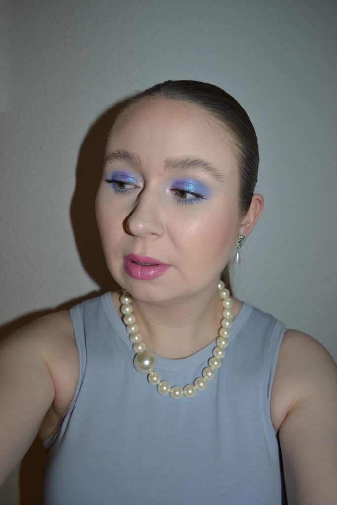 (Base: primers – Wet n Wild Prime Focus The Impossible primer + MAC Strobe Cream (shade: Pinklite), foundation – L’Oreal Paris Infaillible 24H Fresh Wear foundation (shade: 015 Porcelain), concealers – L’Oréal Infaillible More Than Concealer (shade: 322 Ivory) + e.l.f. Cosmetics Flawless Brightening concealer (shade: Fair 10 C), powder – Huda Beauty Easy Bake powder in Sugar Cookie. Face make-up: bronzer – Catrice Holiday Skin luminous bronzer in 010 Summer In The City, blusher – Oden’s Eye Solmåne Sunlight Love blusher in B101 Sunset Clouds, highlighter – Oden’s Eye Solmåne Moonlight Feel highlighter in H106 Rose Sky. Eye make-up: base – MAC Pro Longwear Paint Pot in Painterly, eyeshadows – Essence eyeshadow in 05 Granny Pants + By BEAUTY BAY New Mood palette (shades: Focused + Content + Inspired + Free), mascara – Pat McGrath Labs Dark Star mascara, eyeliner – Oden’s Eye Solmåne II gel liner in 010 Galaxy. Eyebrows: Anastasia Beverly Hills Brow Freeze + Maybelline Brow Ultra Slim pencil in Medium Brown. Lips: L.A. Girl Perfect Precision lip liner in Pinky + MAC Barbiestyle lipstick + Wet n Wild Mega Slicks lip gloss in Sinless)