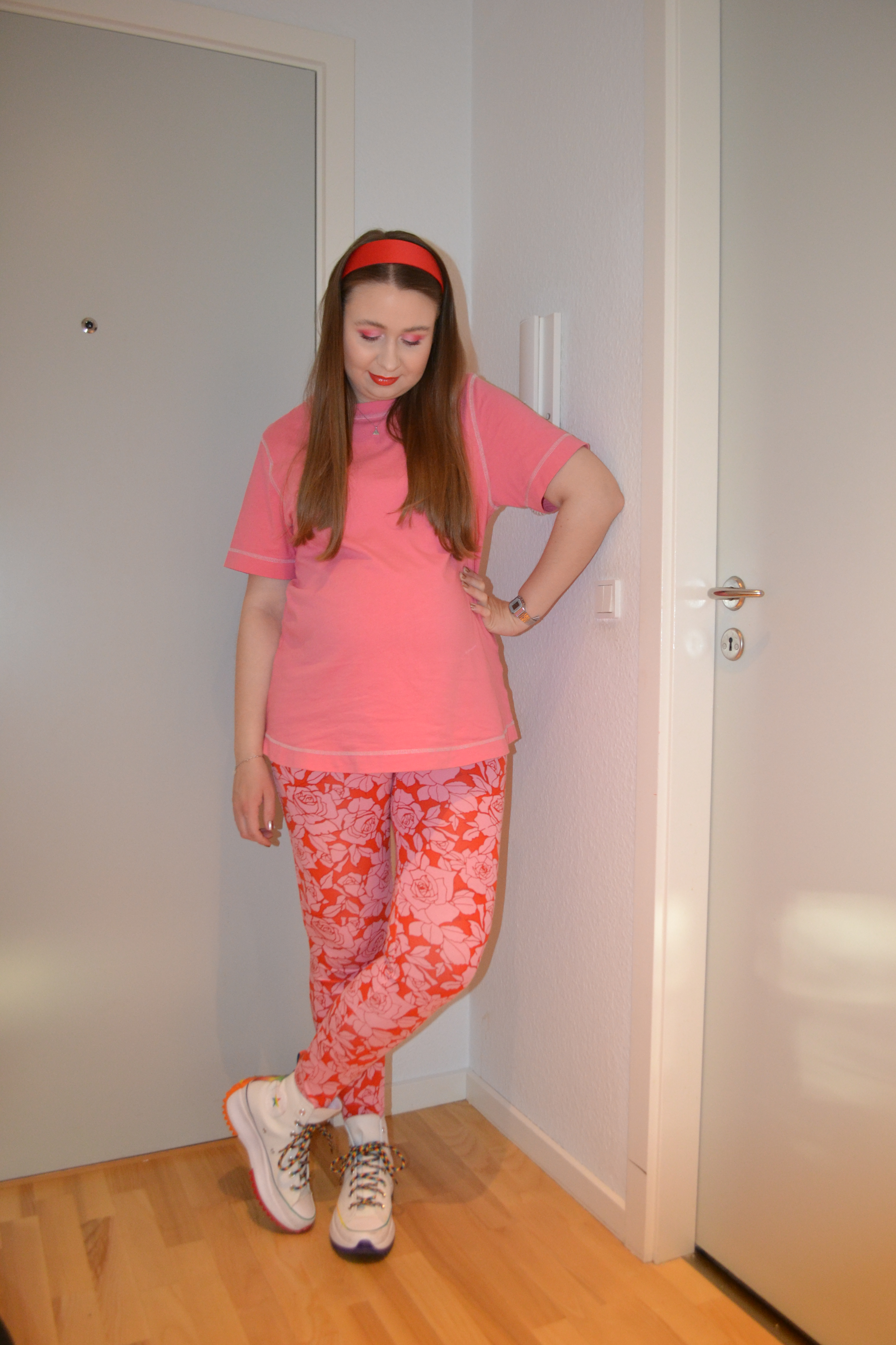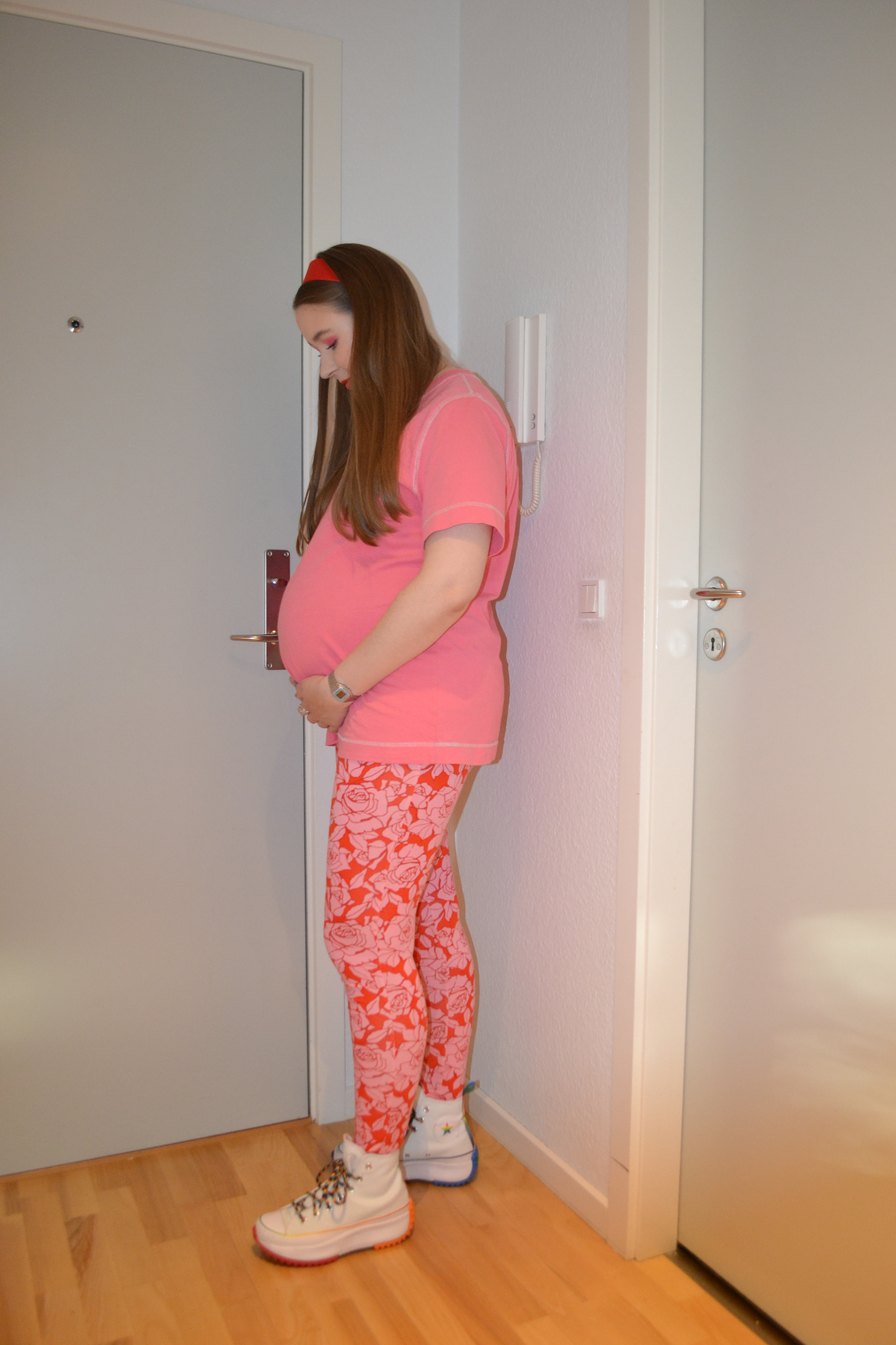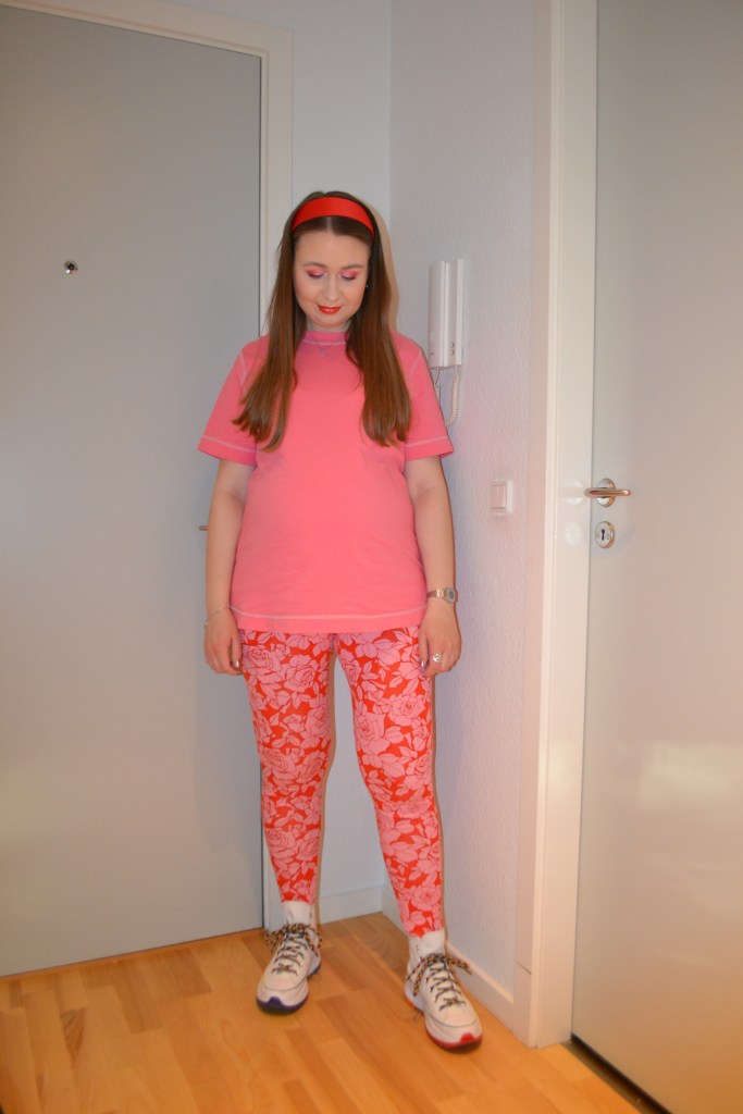 Cutest, comfiest Posted on October 3, 2022 by Mucha-Lucha Here’s what I wore Thursday September 15. I love pink and red together, and this is just the cutest, most comfiest pregnancy look if you ask me. (T-shirt – H&M MAMA, leggings – Asos Maternity, sneakers – Converse) Share this: Click to share on X (Opens in new window) X Click to share on Facebook (Opens in new window) Facebook Like Loading... Related
