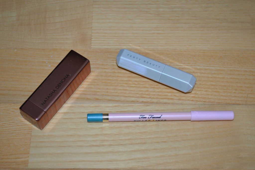 The last three products I purchased was from the outlet section. I picked up the Natasha Denona I Need A Nude lipstick in 10NB Andrea, which is a very pretty nude shade. I also picked up the Fenty Beauty Slip Shine sheer shiny lipstick in Vamps Who Brunch, which is a fun deep shimmery purple. An lastly, I got the Too Faced Killer Liner gel eyeliner in Killer Turquoise, because I wanted to try out the formula, and I do really like it.