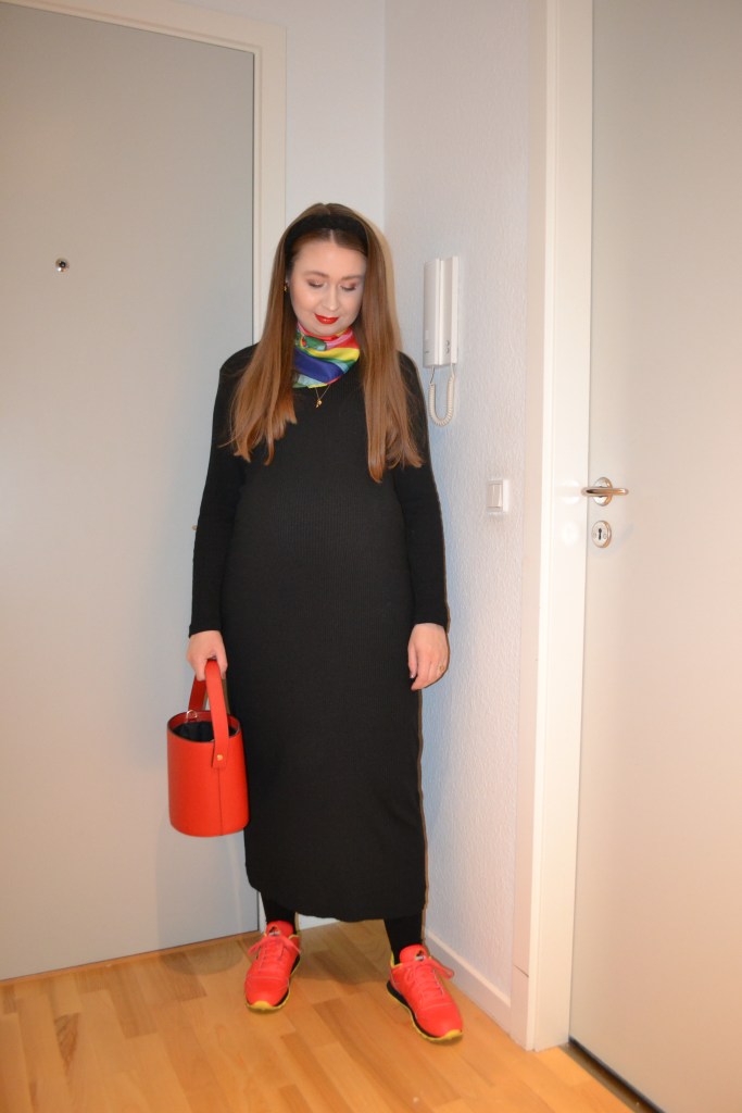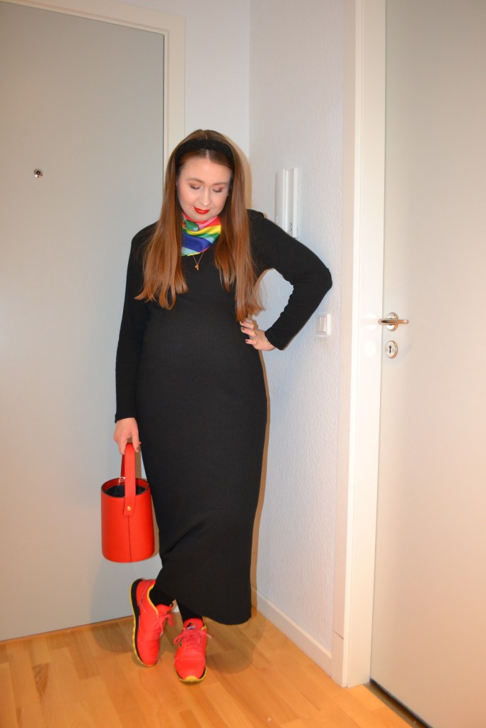 Here’s what I wore Saturday October 1. My boyfriend and I went out on a little lunch date; our last date while we’re just the two of us. I wore another dress that my mum wore when she was pregnant with my youngest sister, and you probably know that I’m not the biggest fan of too much black, so I had to add some colour to the outfit through the accessories.