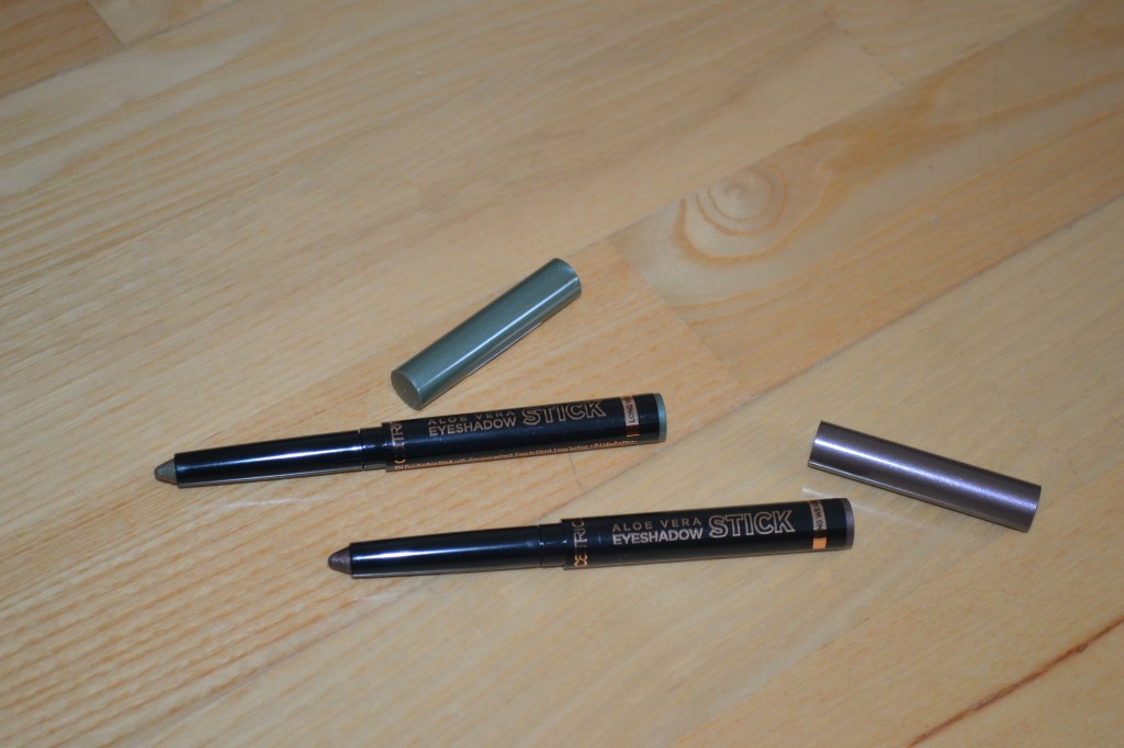 As I’ve mentioned several times by now, one of my current make-up obsessions is cream and liquid eyeshadows including cream eyeshadows in stick form. Therefore, I was excited to see that Catrice came out with their Aloe Vera Eyeshadow Sticks. I picked up two shades; 030 Olive Glam and 040 Lavender Brown.
